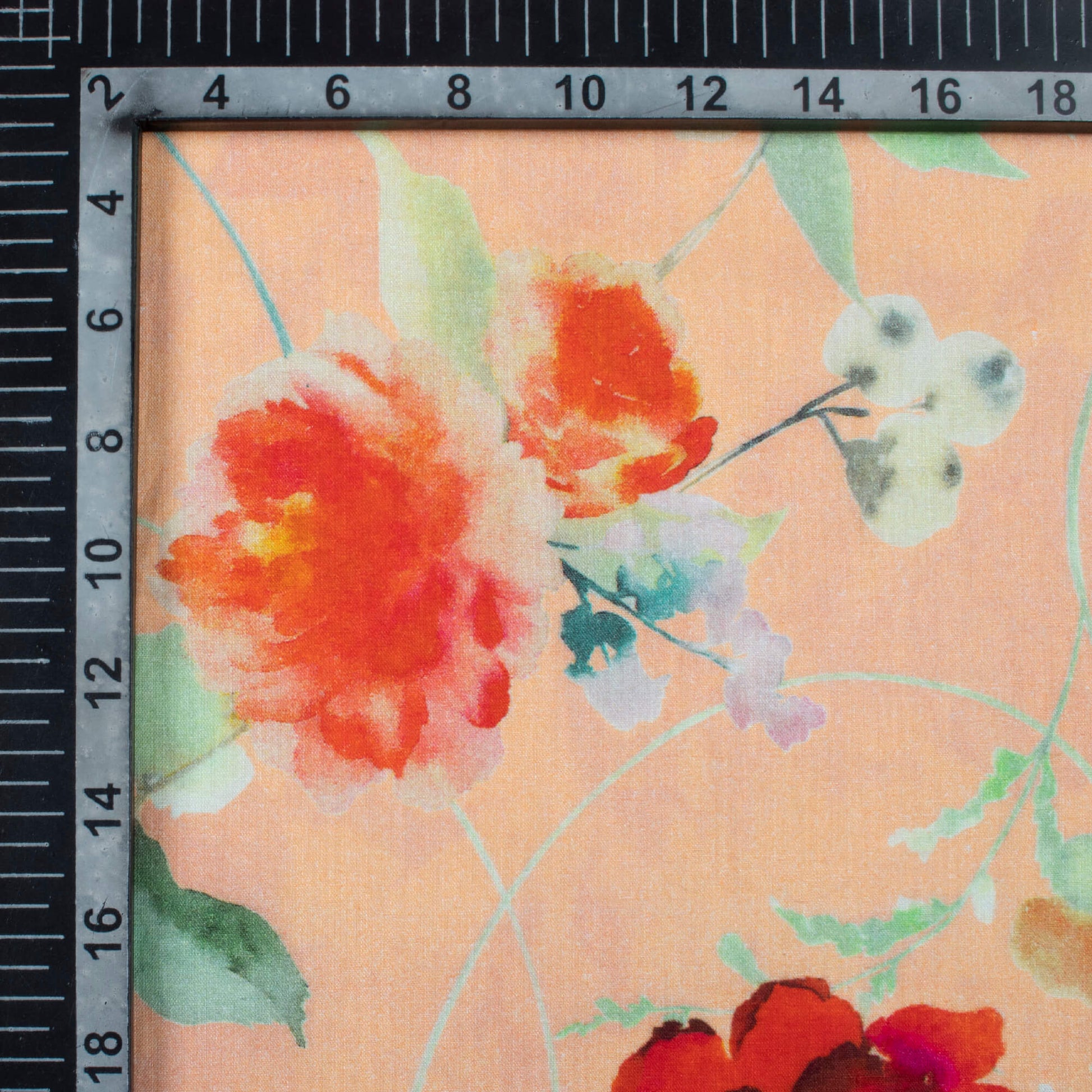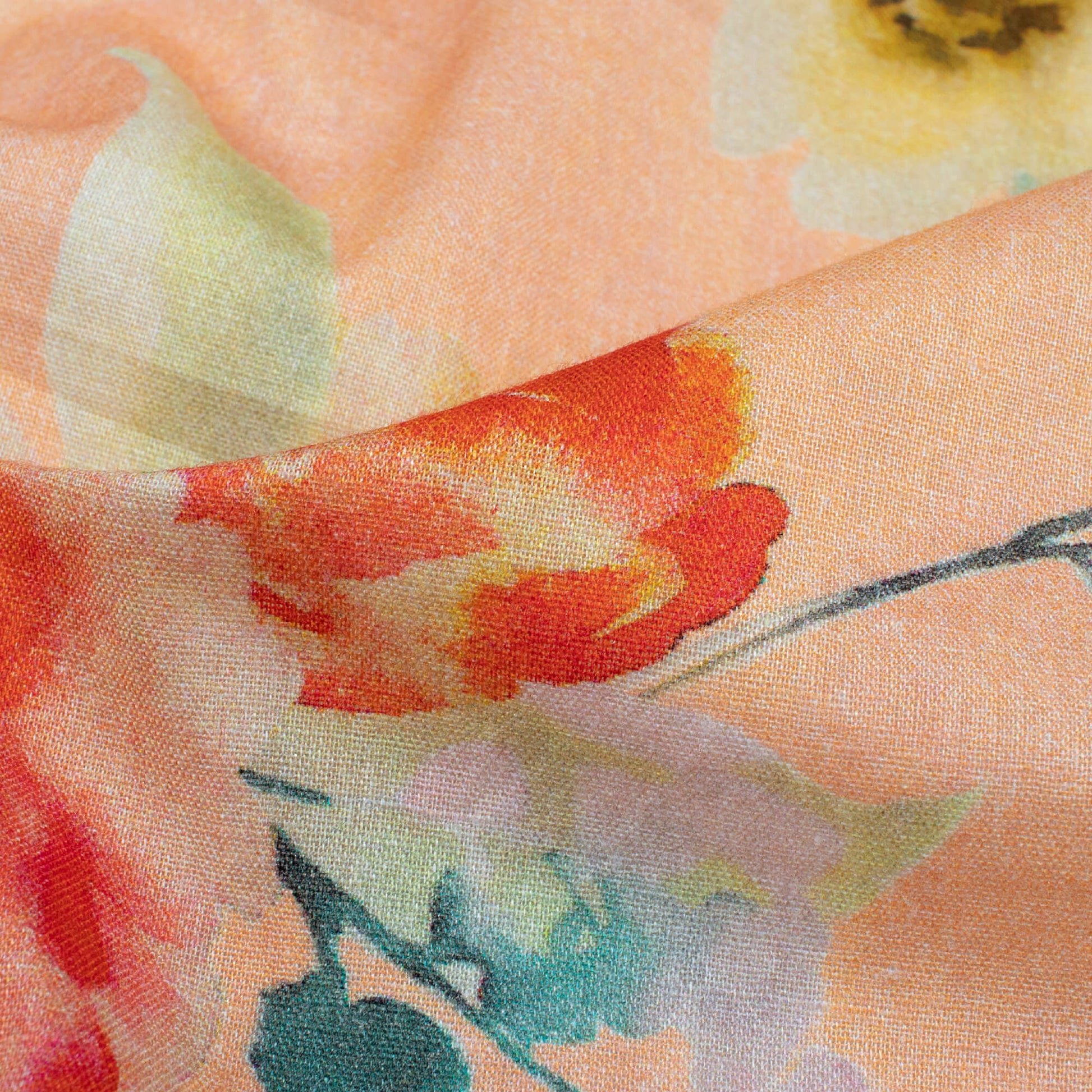 Pastel Peach And Orange Floral Pattern Digital Print Cotton Cambric Fabric