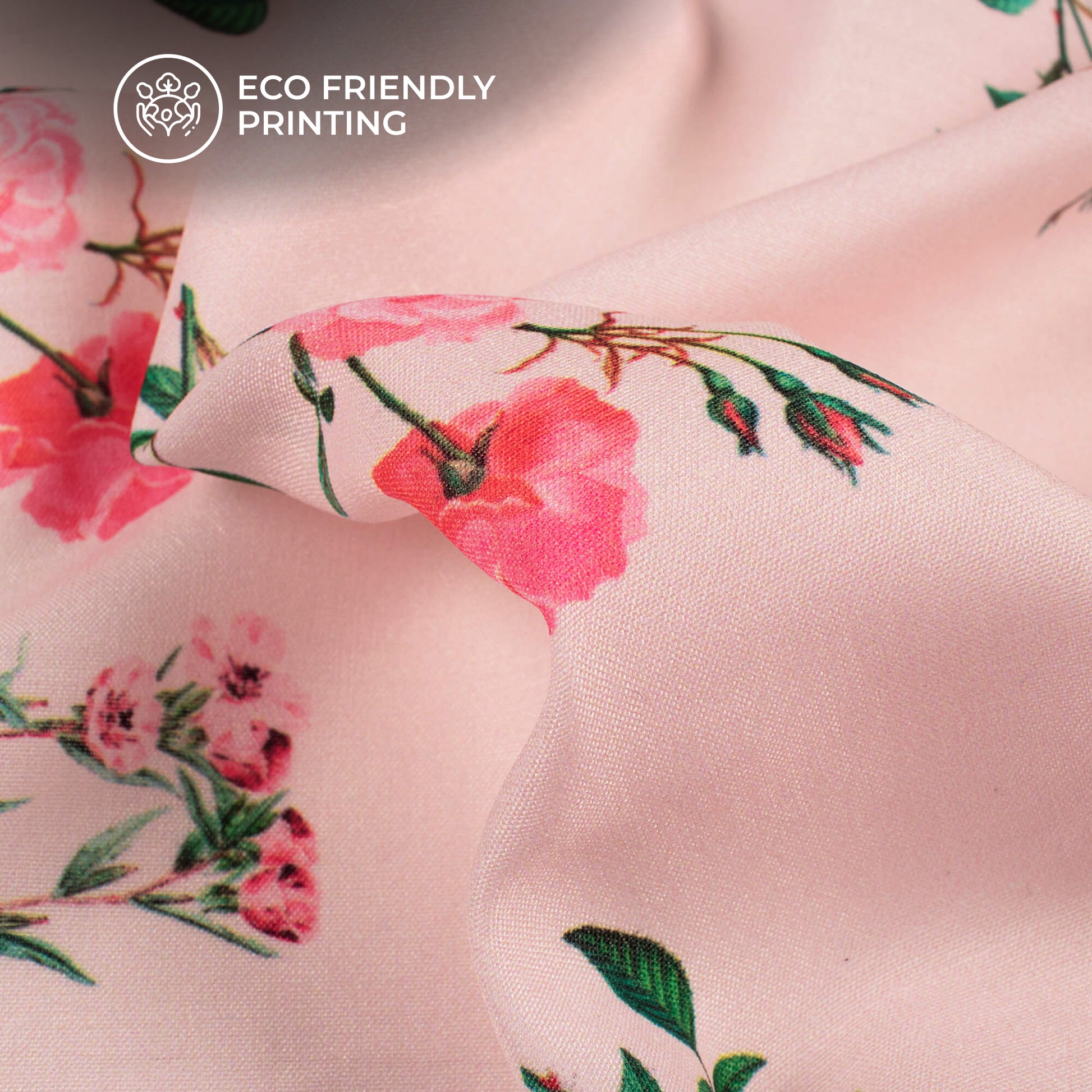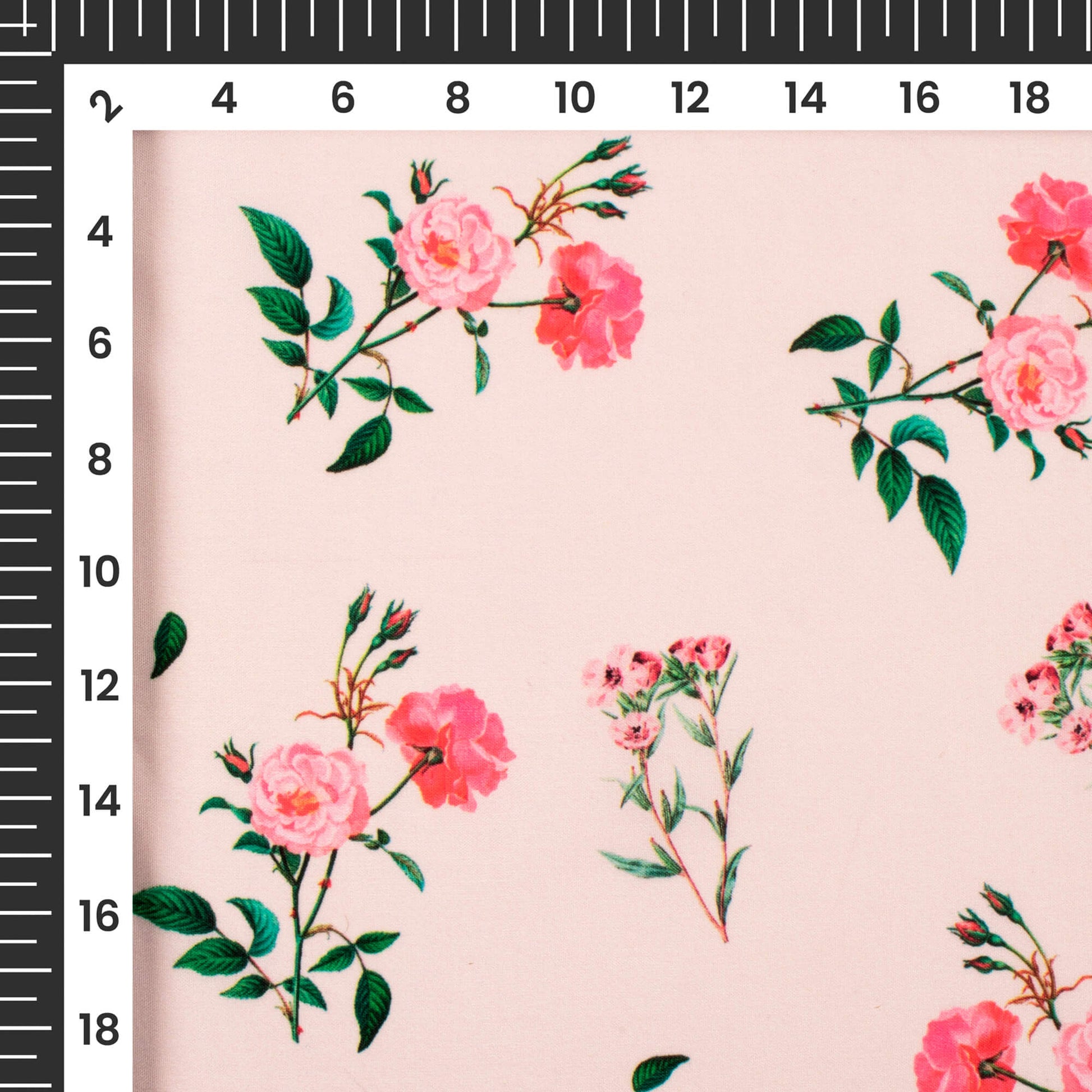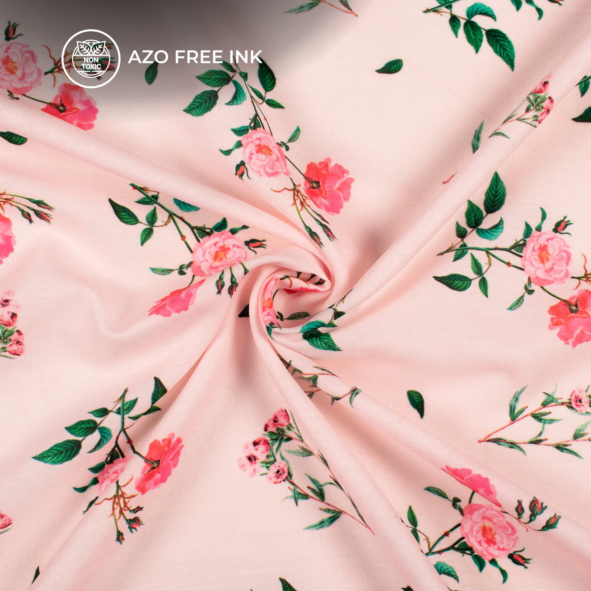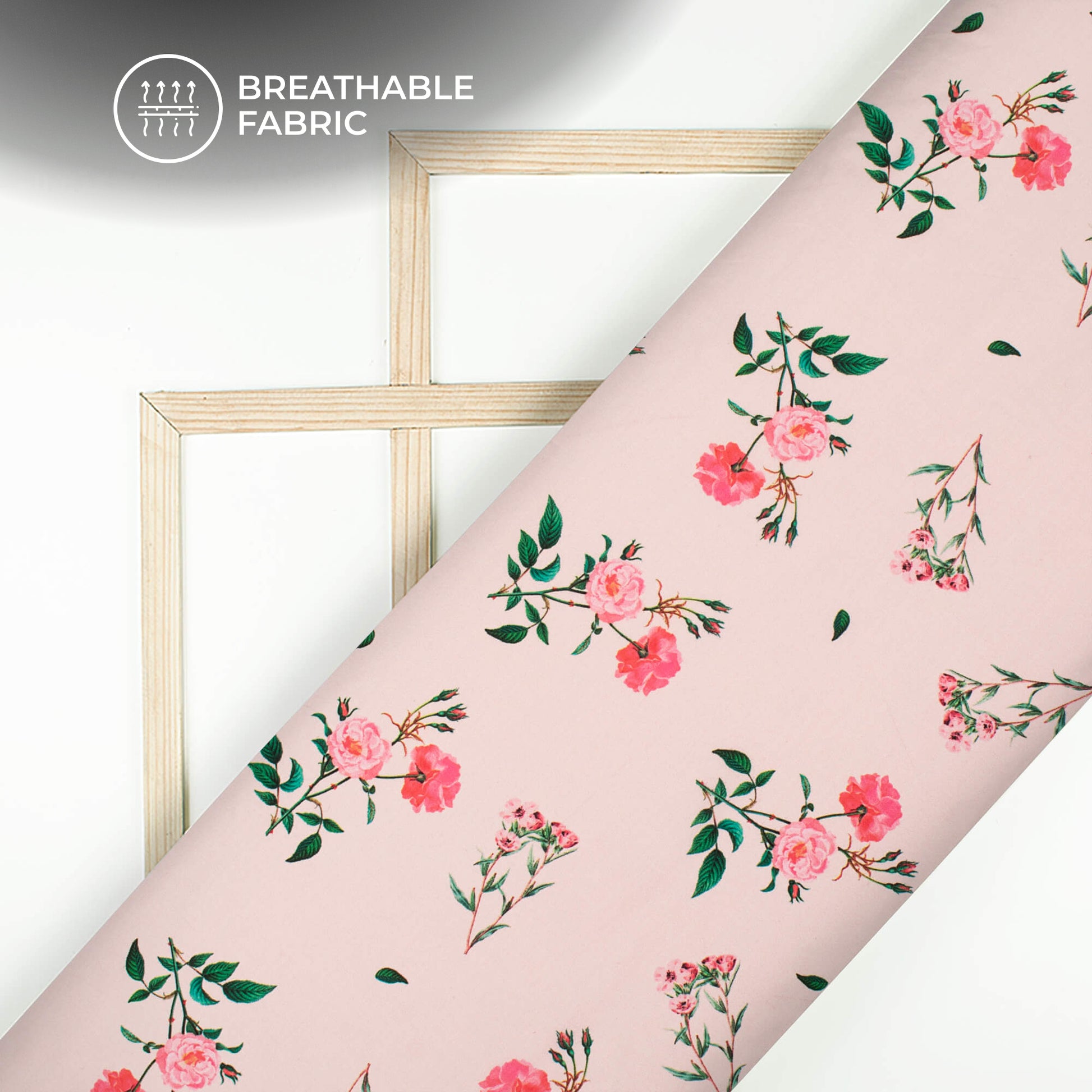 Pastel Peach And Pink Floral Pattern Digital Print Muslin Fabric