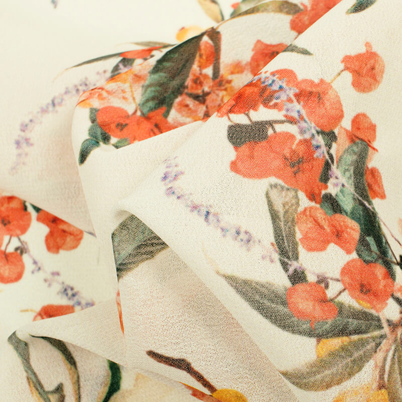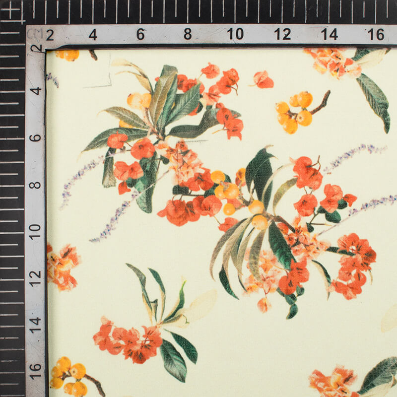 Perchment Cream And Peach Floral Pattern Digital Print Georgette Fabric