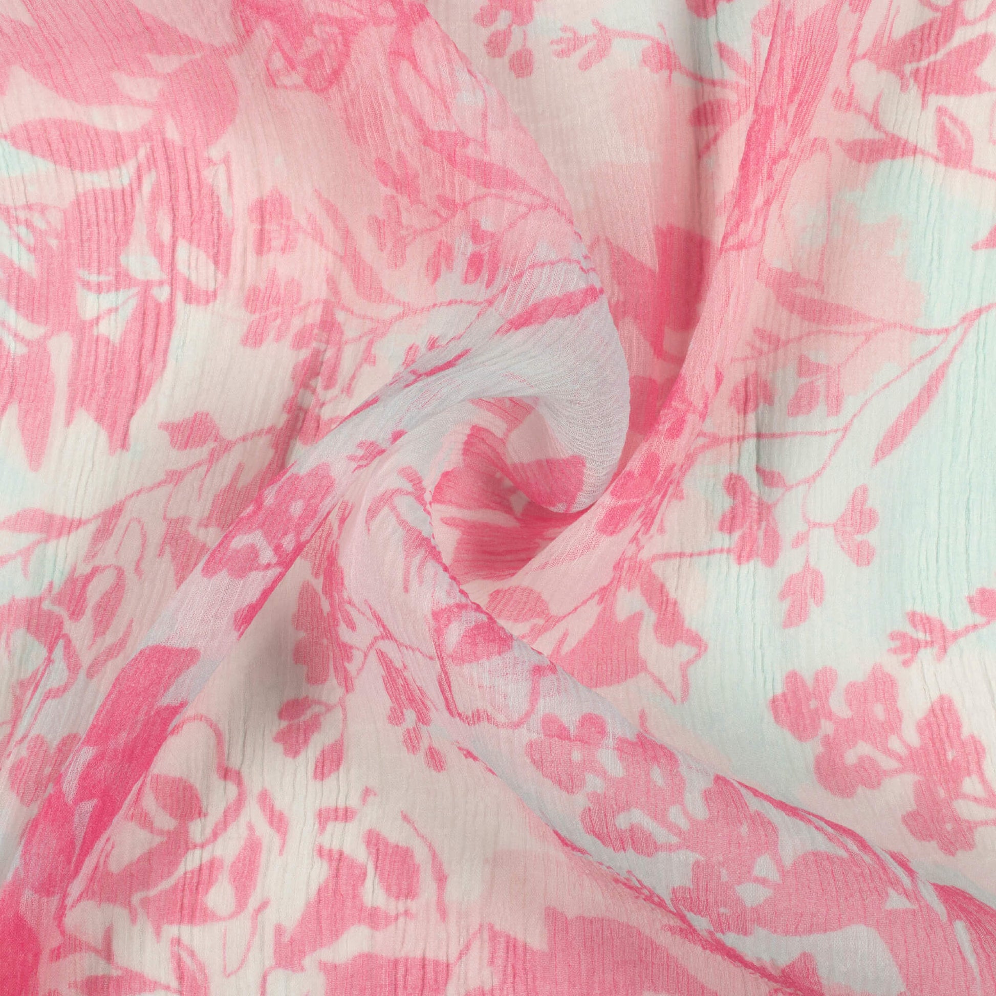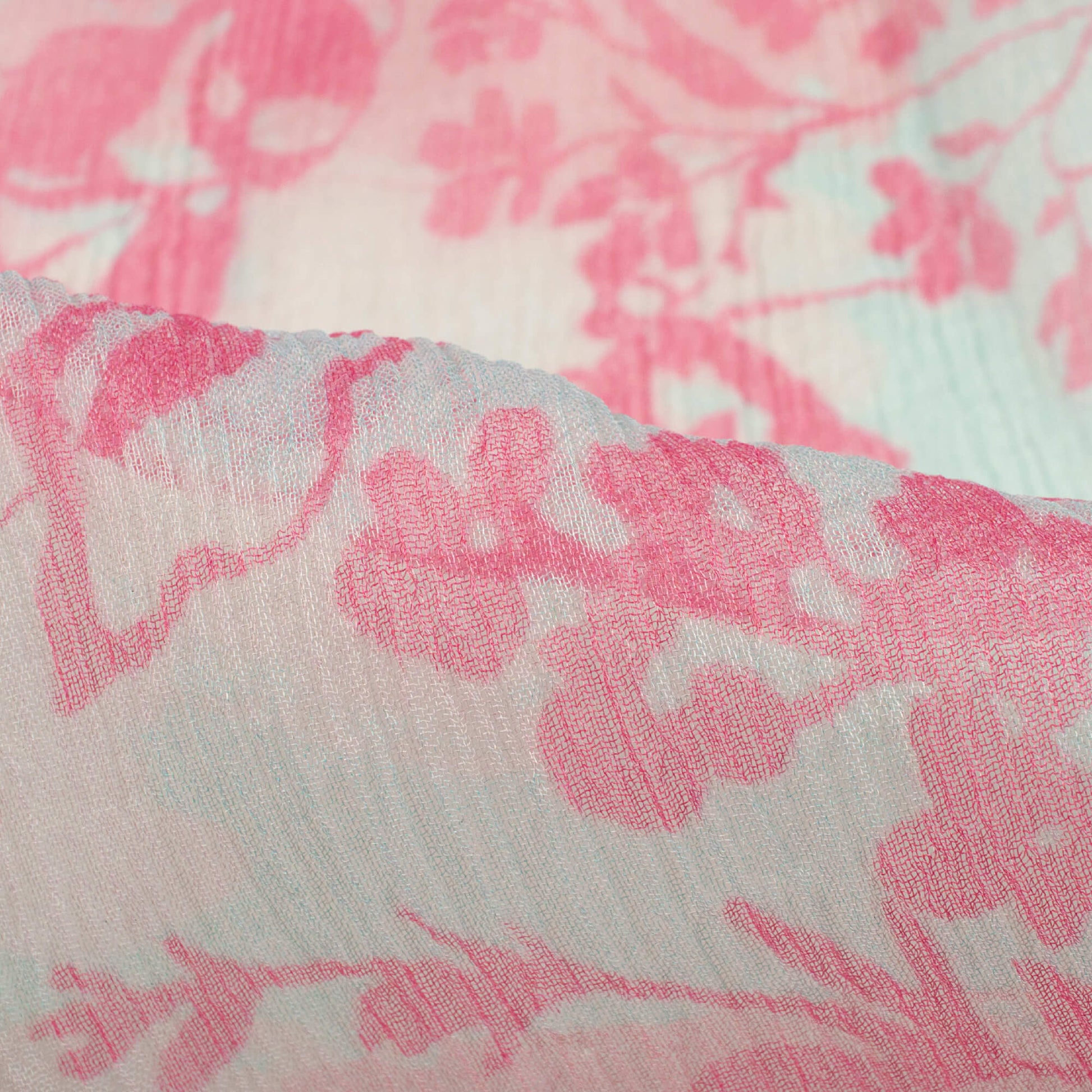 Persian Pink And Pale Blue Floral Pattern Digital Print Bemberg Chiffon Fabric