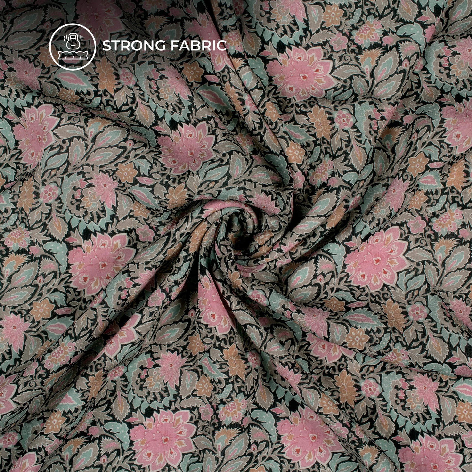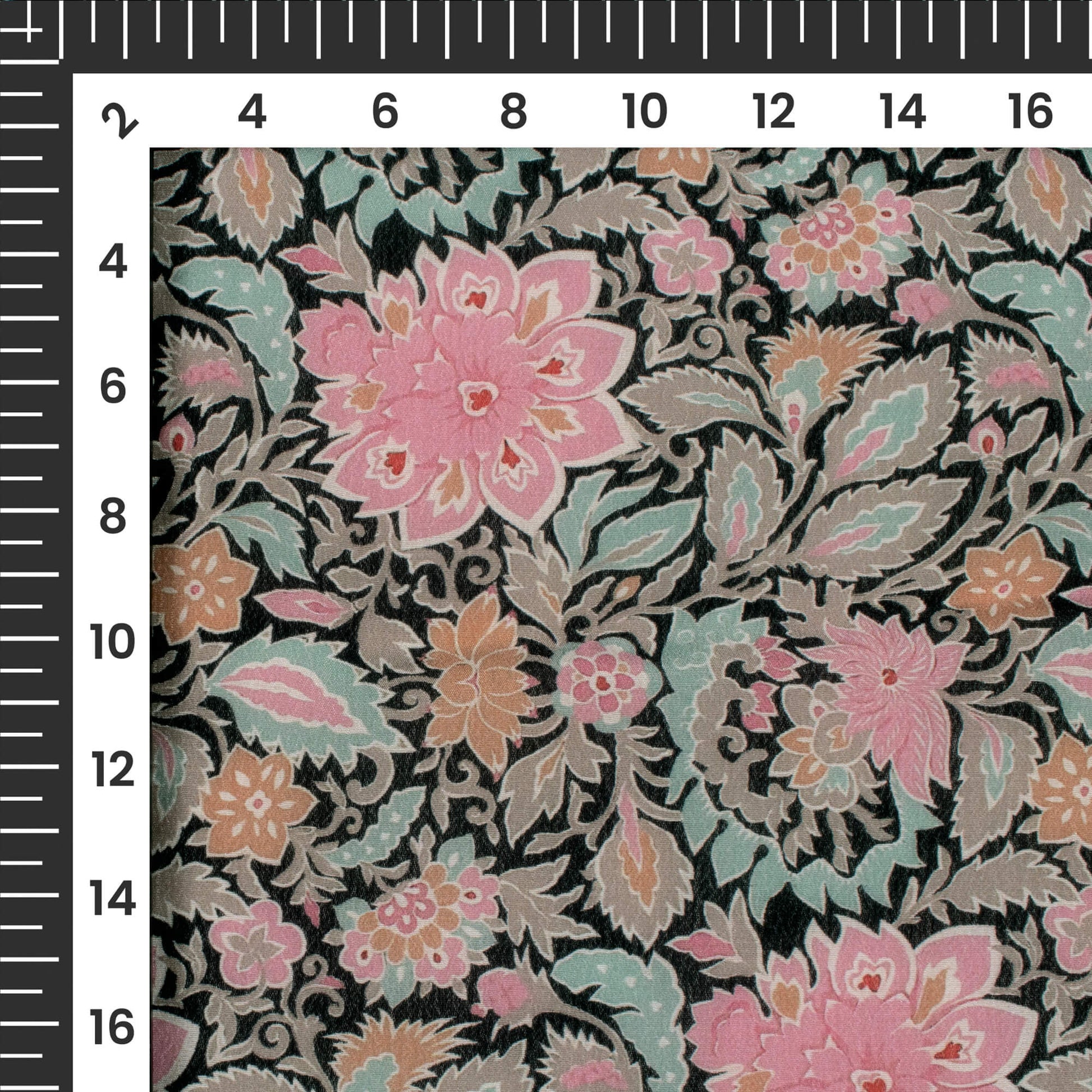Pink Floral Digital Print Viscose Natural Crepe Fabric