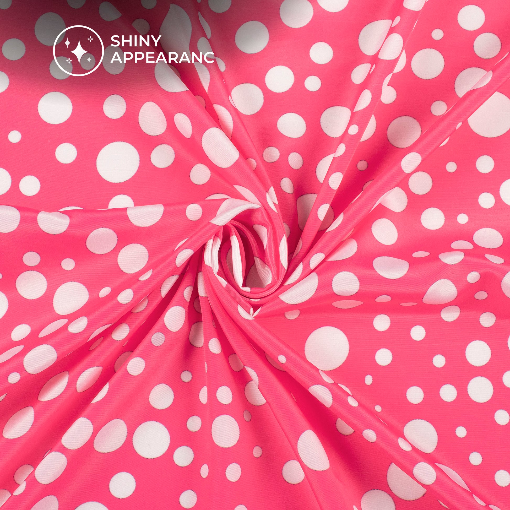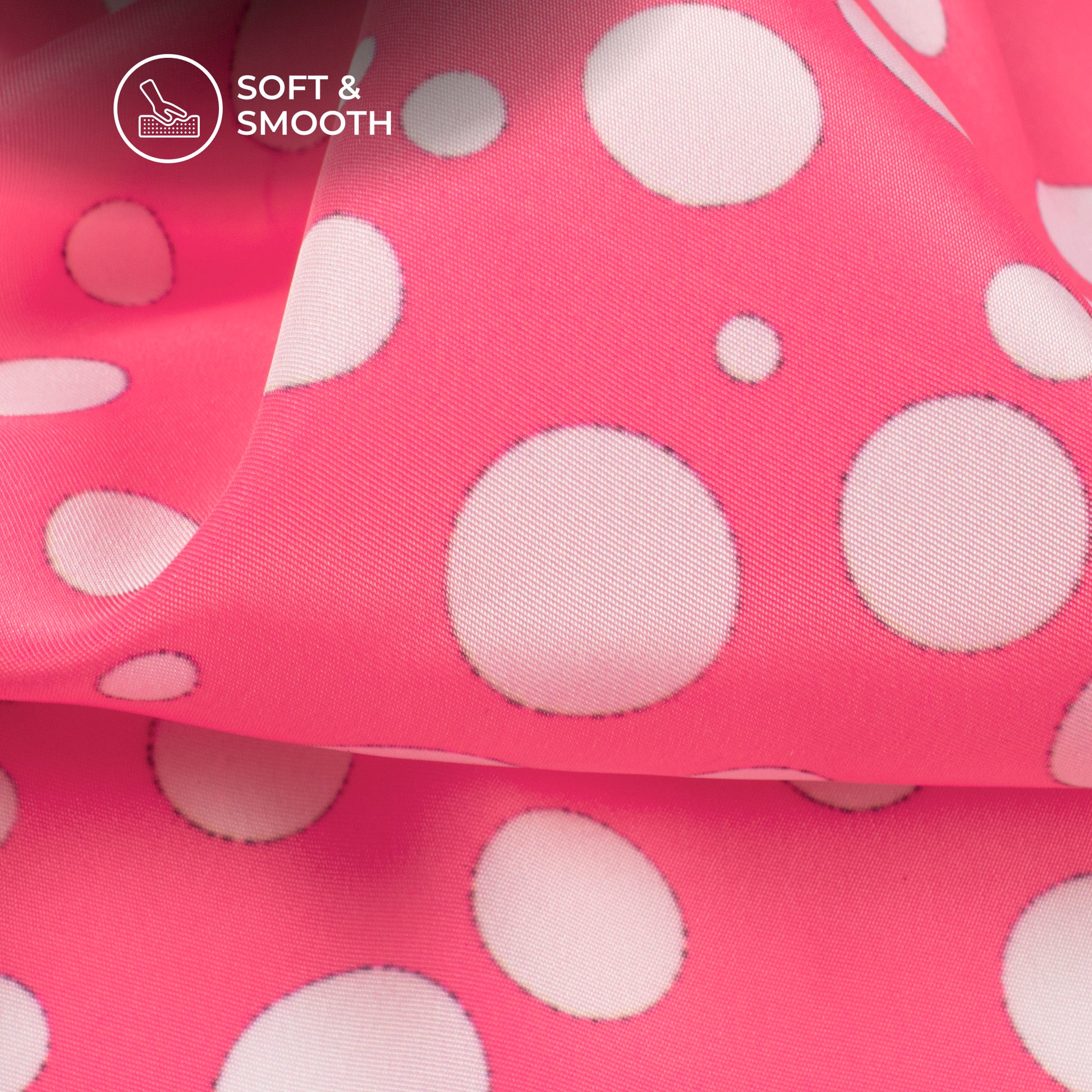 Pink Polka Dot Digital Print Crepe Satin Fabric