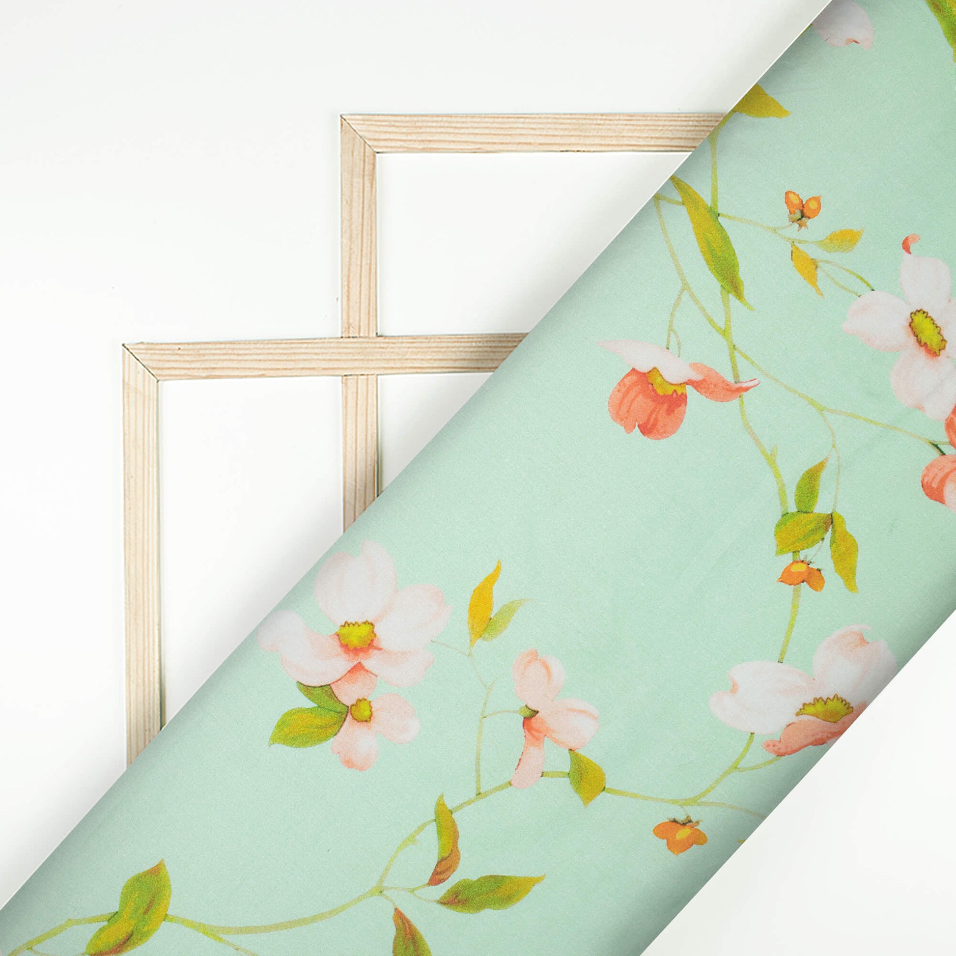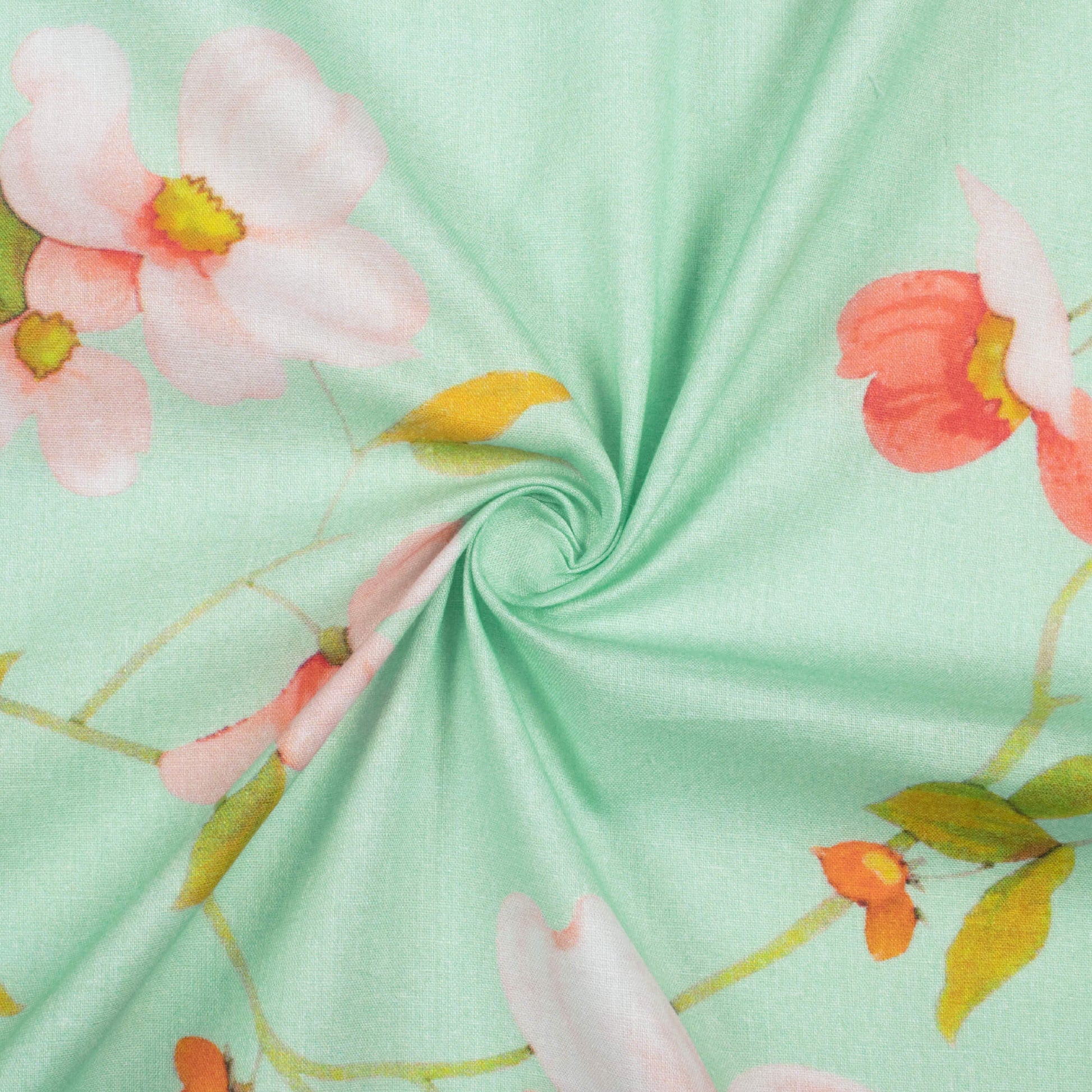 Powder Blue And Pale Pink Floral Pattern Digital Print Cotton Cambric Fabric