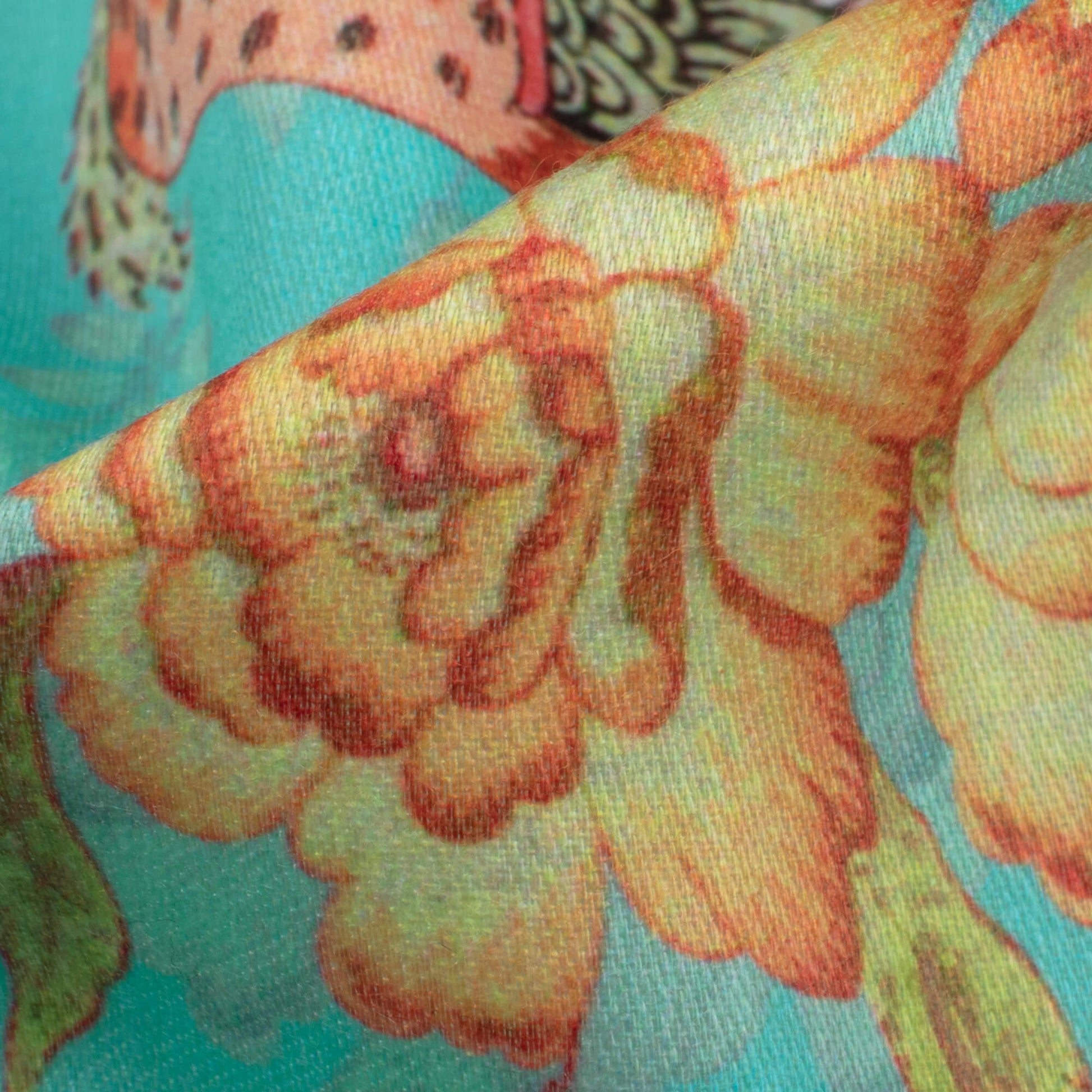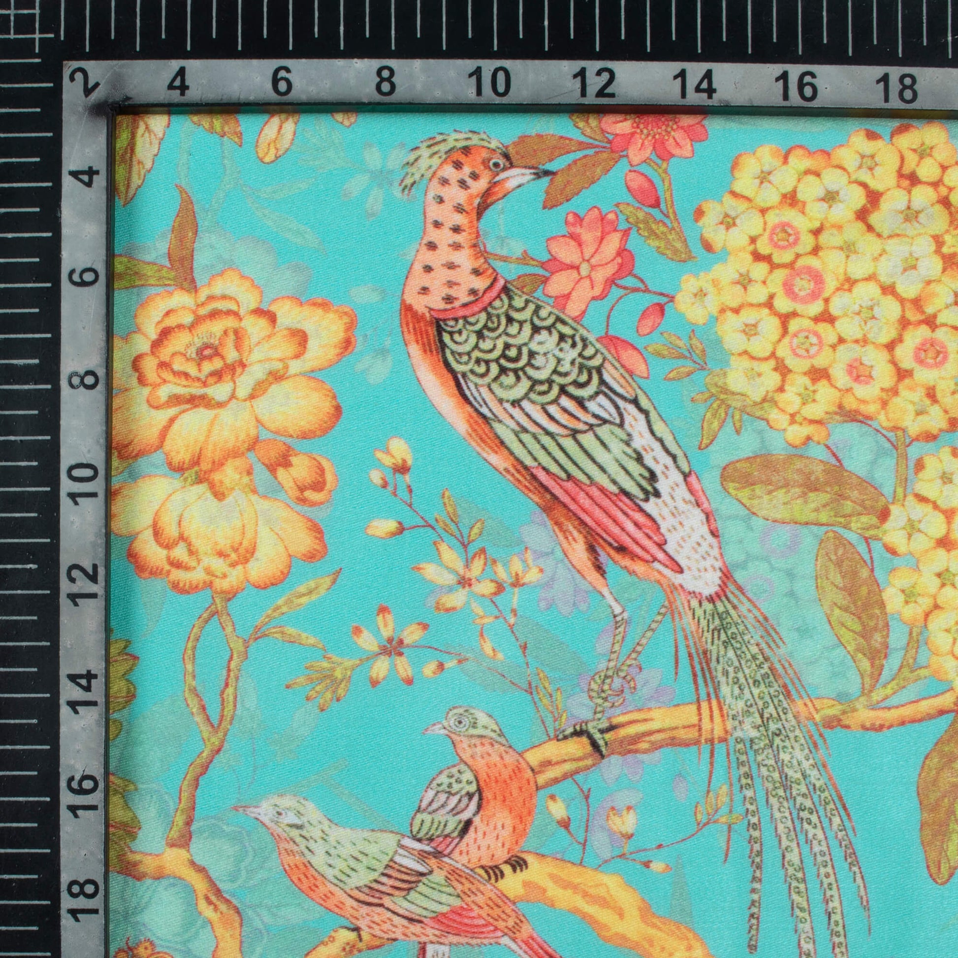 Powder Yellow And Laguna Yellow Floral Pattern Digital Print Poly Glazed Cotton Fabric