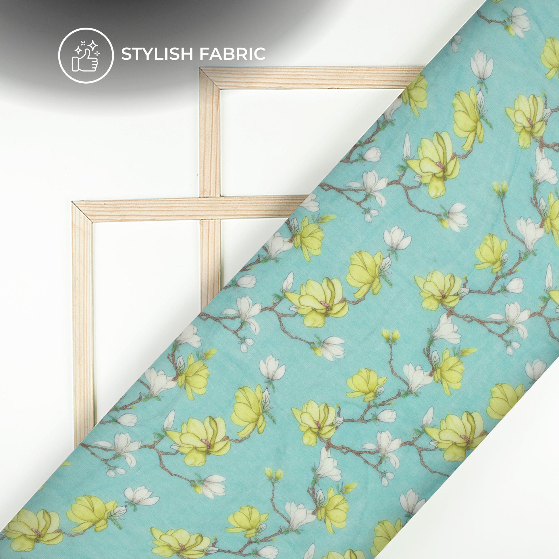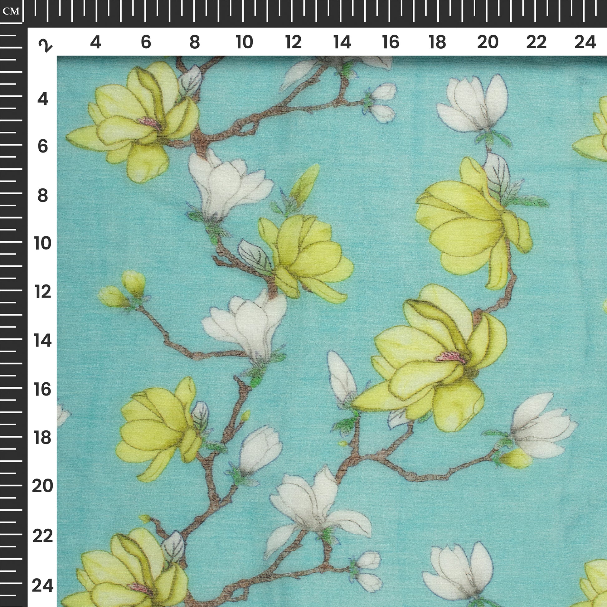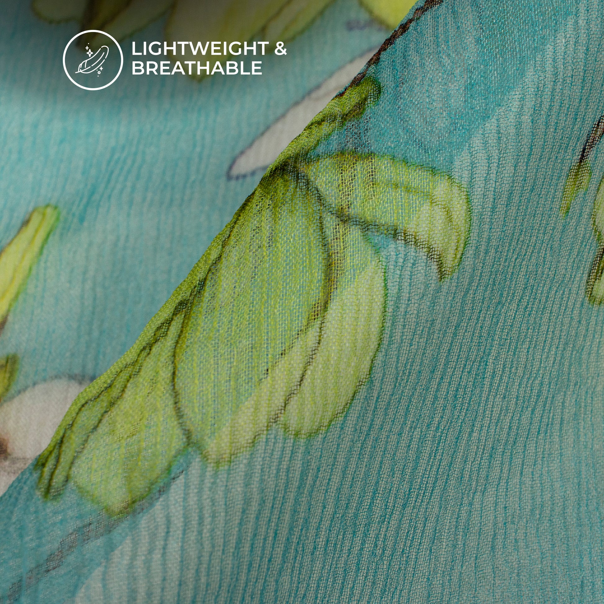 Pretty Green Floral Digital Print Bemberg Chiffon Fabric