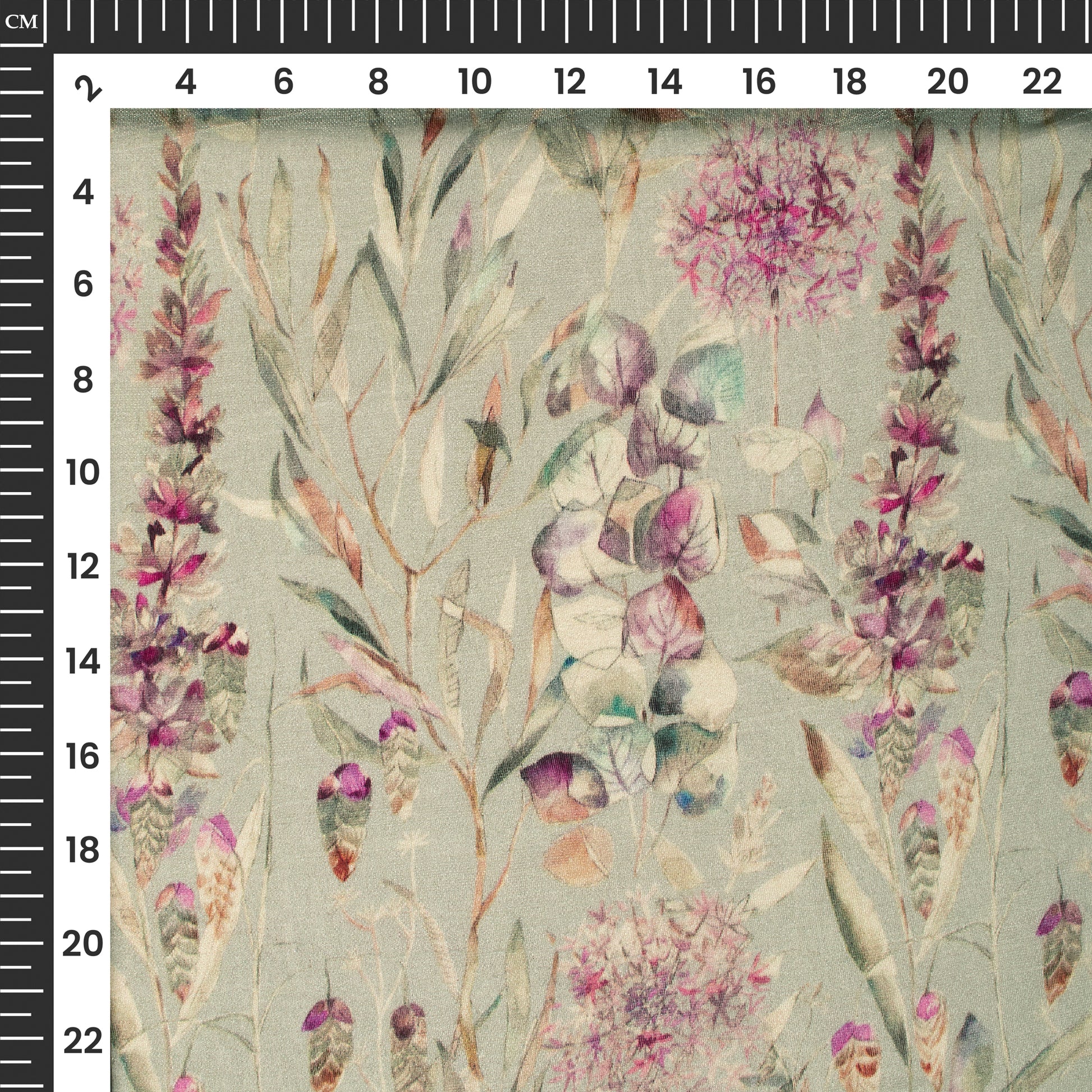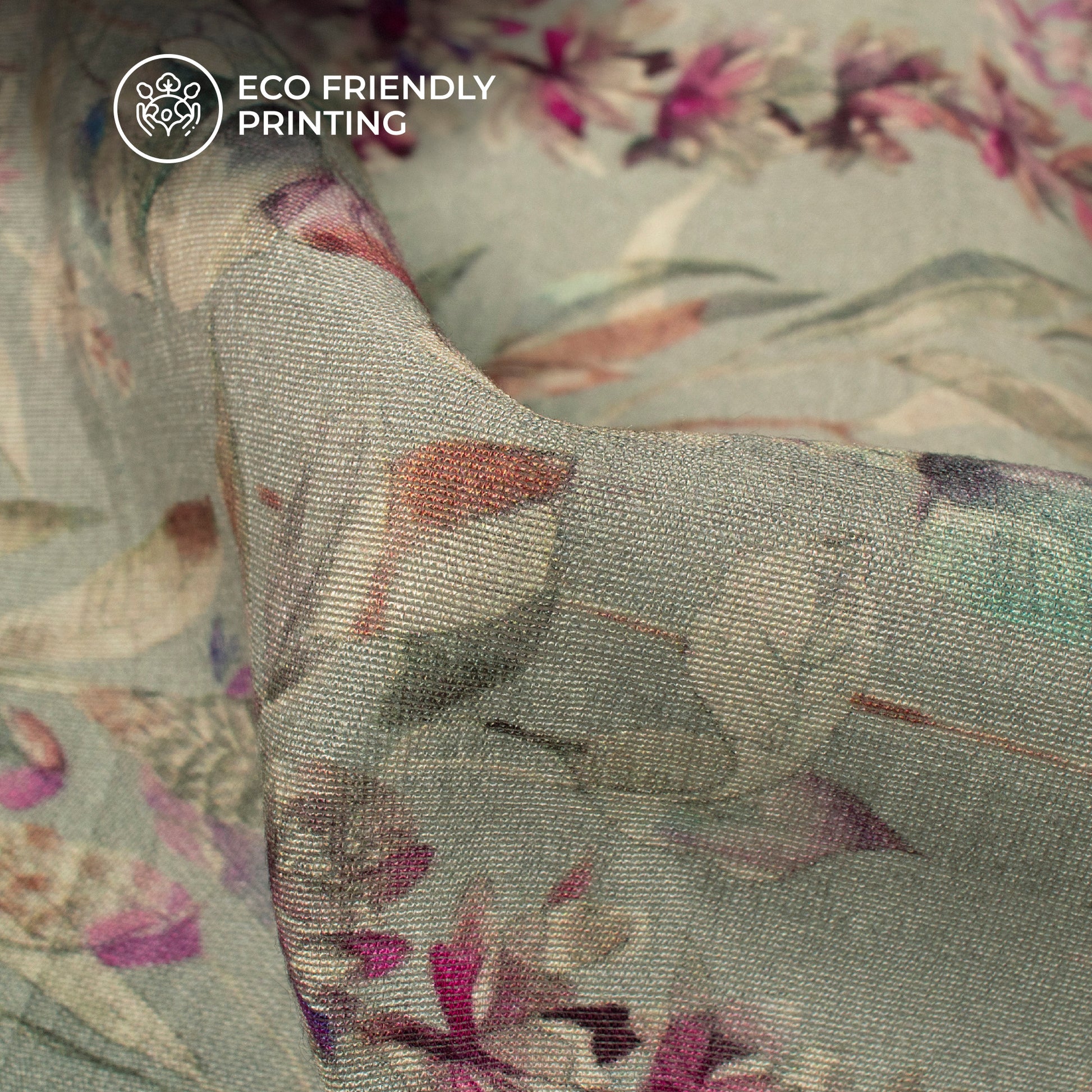 Rhino Grey And Pink Floral Digital Print Viscose Chanderi Fabric