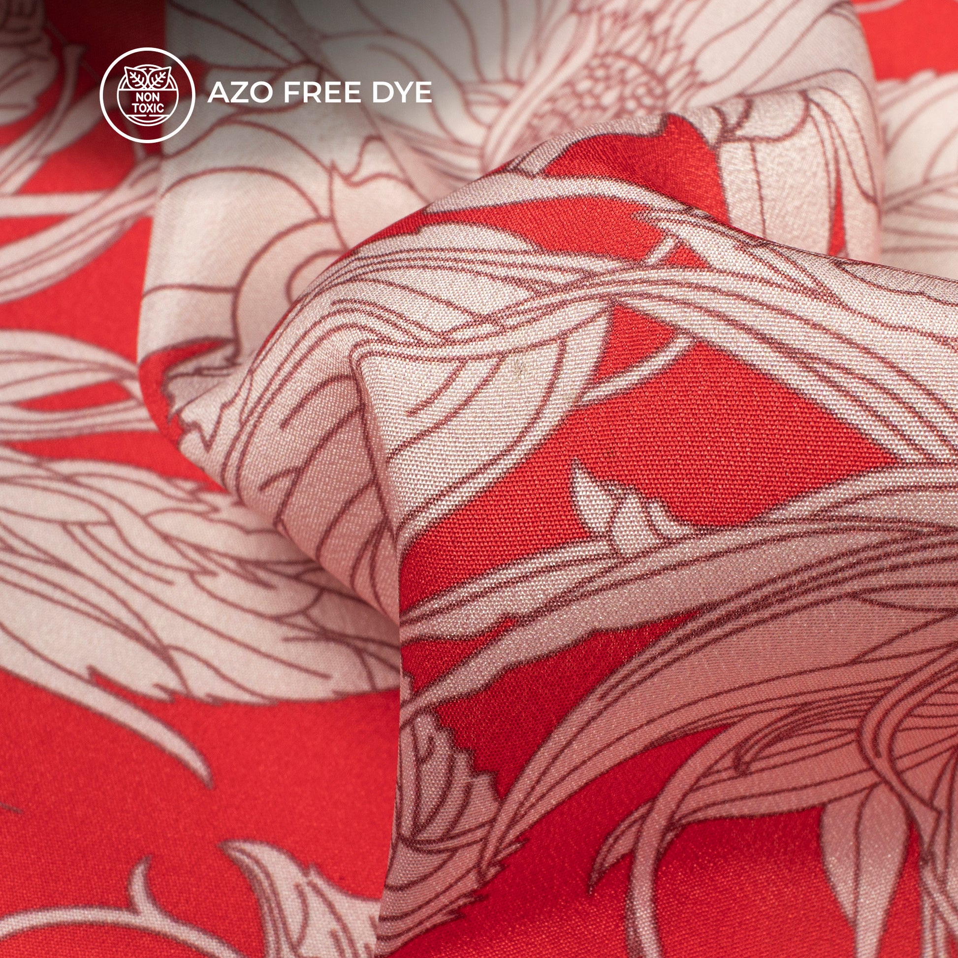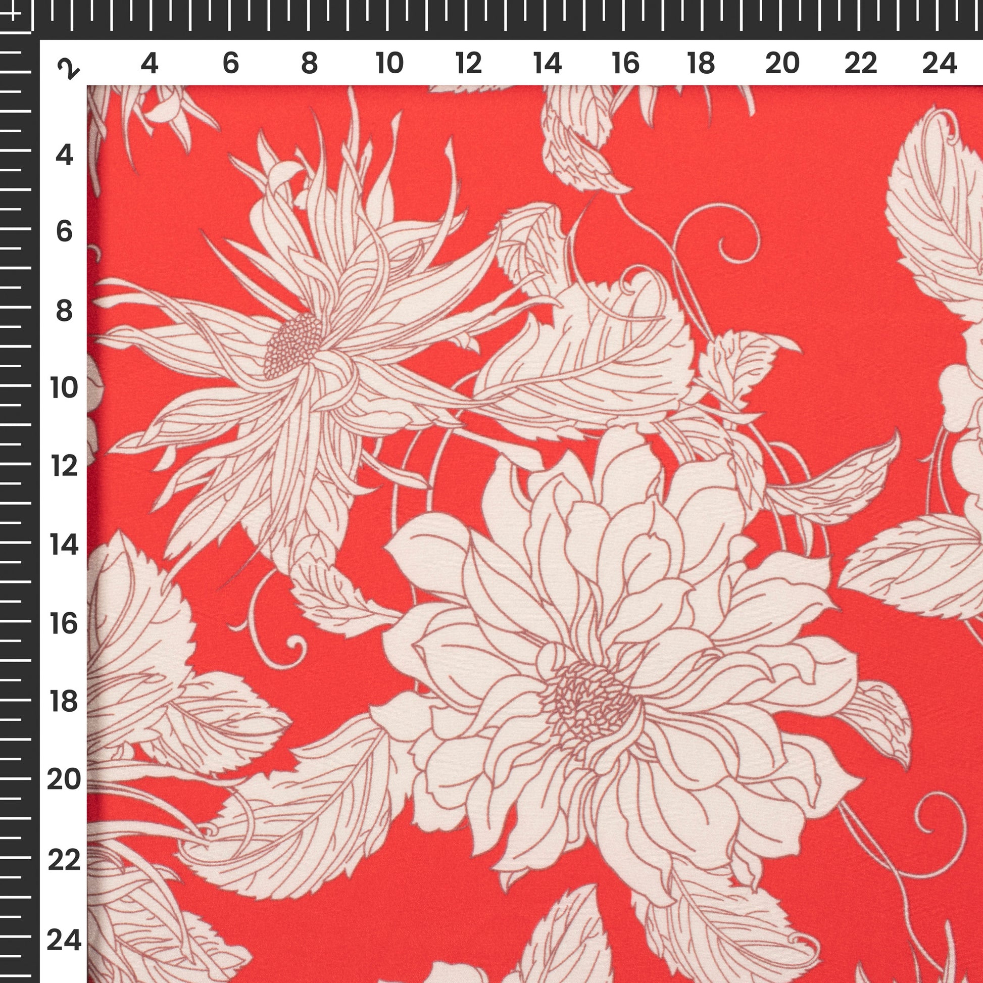 Rose Red Floral Digital Print Crepe Silk Fabric
