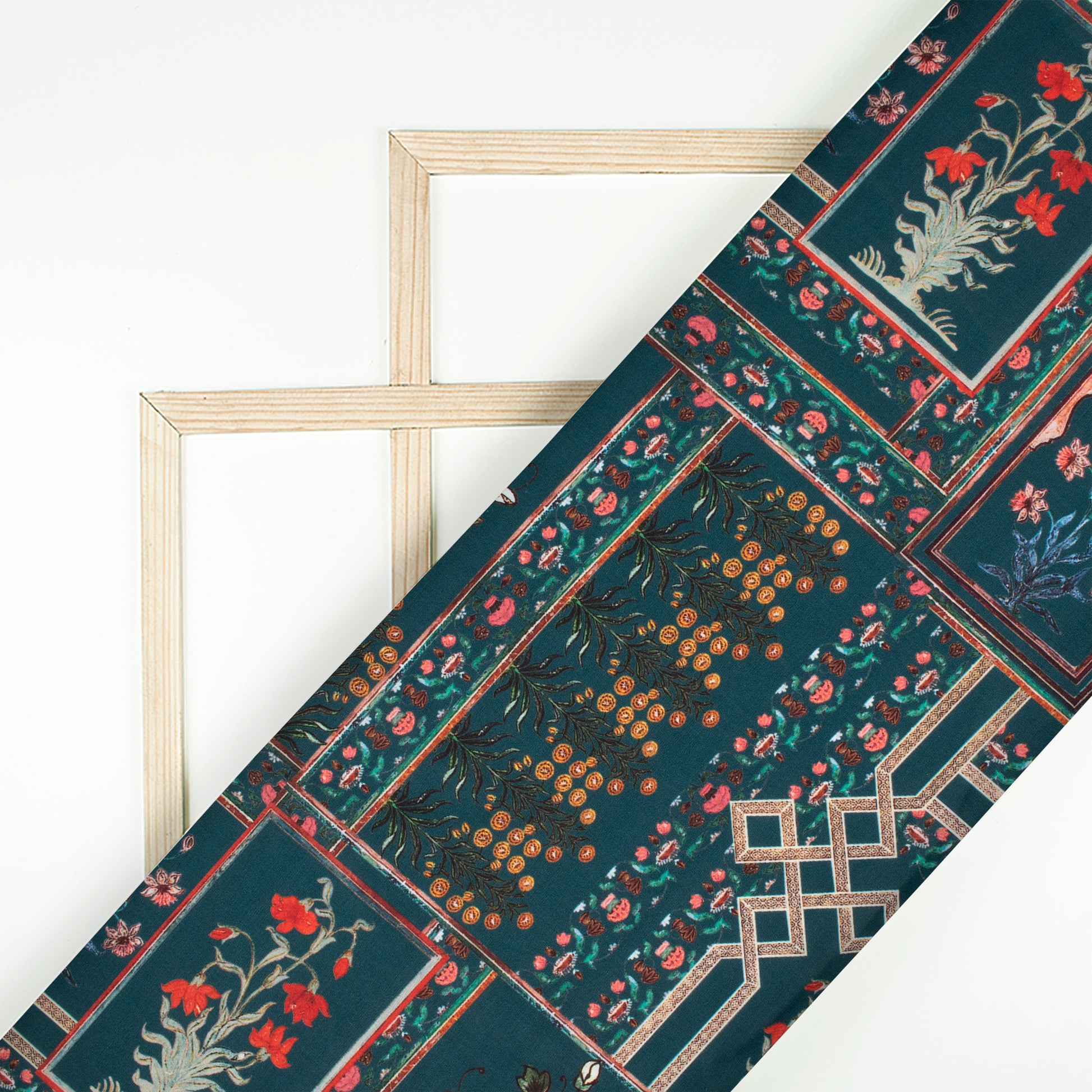 Sacramento Green And Punch Pink Patch Pattern Digital Print Muslin Fabric