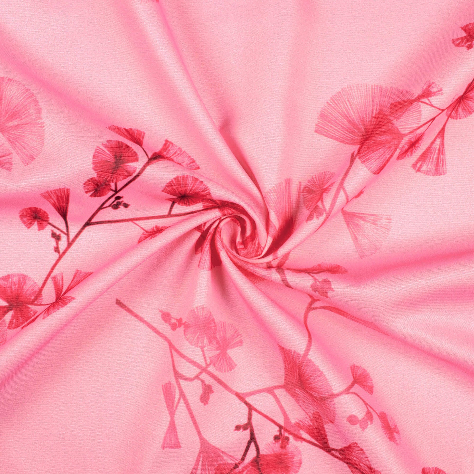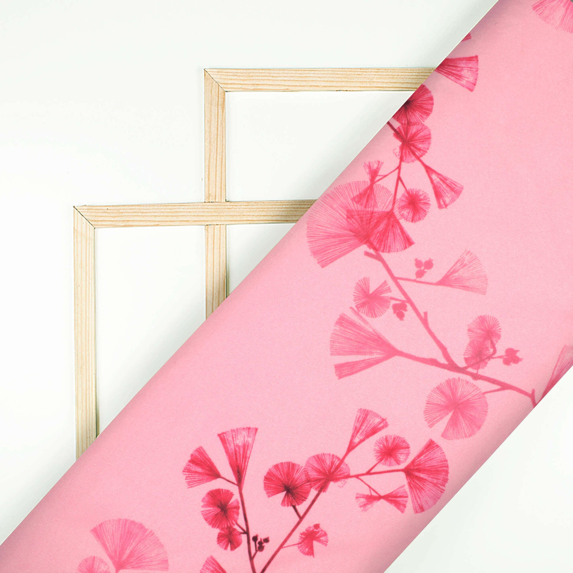 Salmon Pink Floral Pattern Digital Print Ultra Premium Butter Crepe Fabric