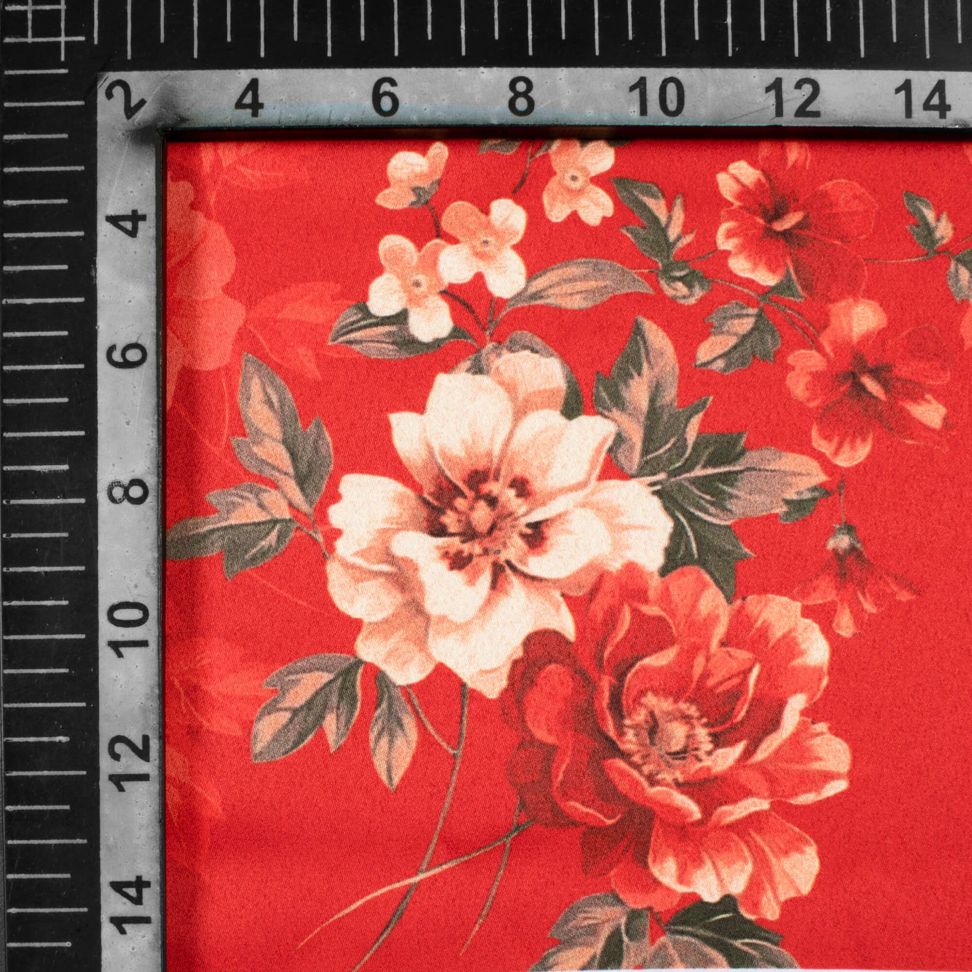 Sangria Red Floral Pattern Digital Print Charmeuse Satin Fabric (Width 58 Inches)