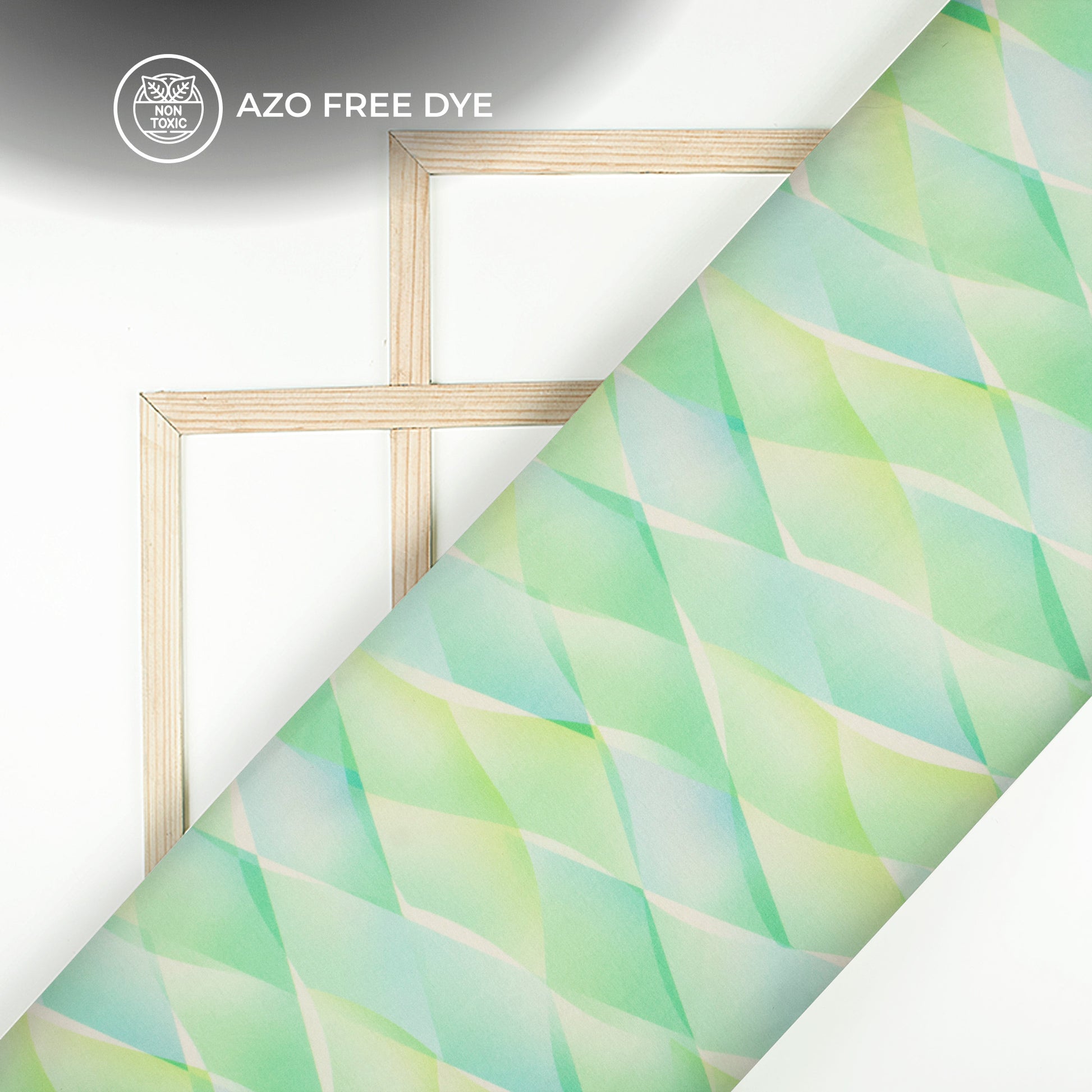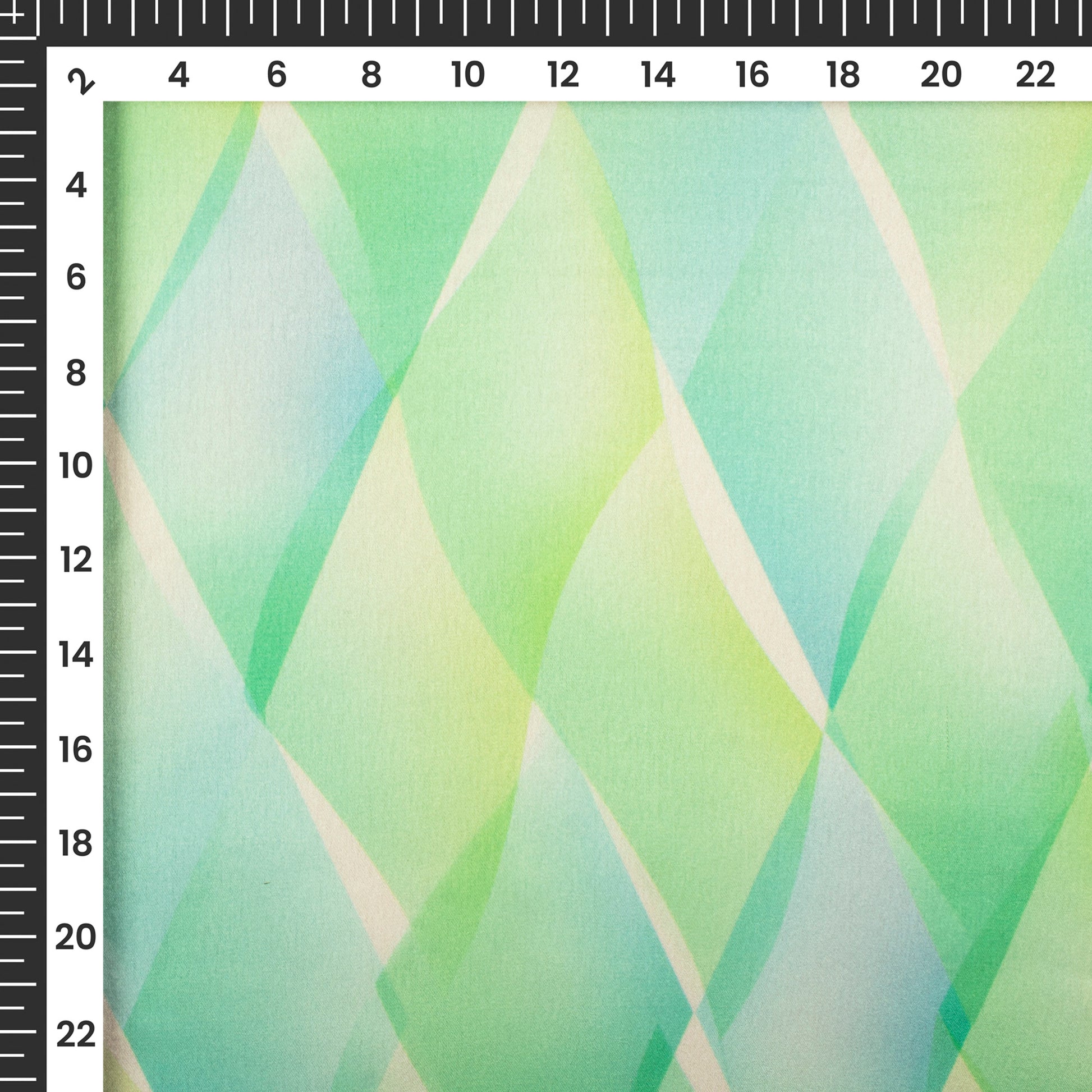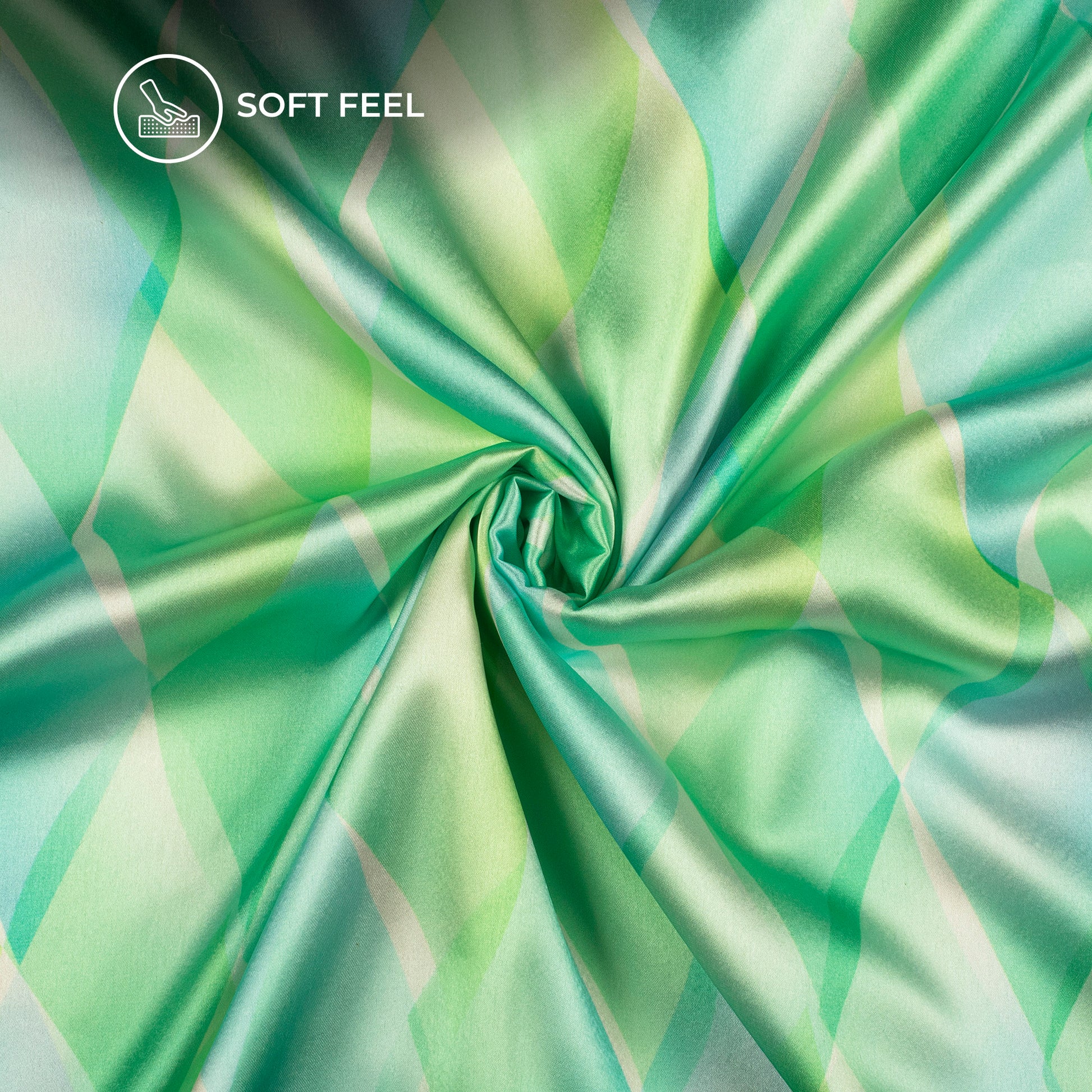 Sheen Green Geometrical Digital Print Japan Satin Fabric