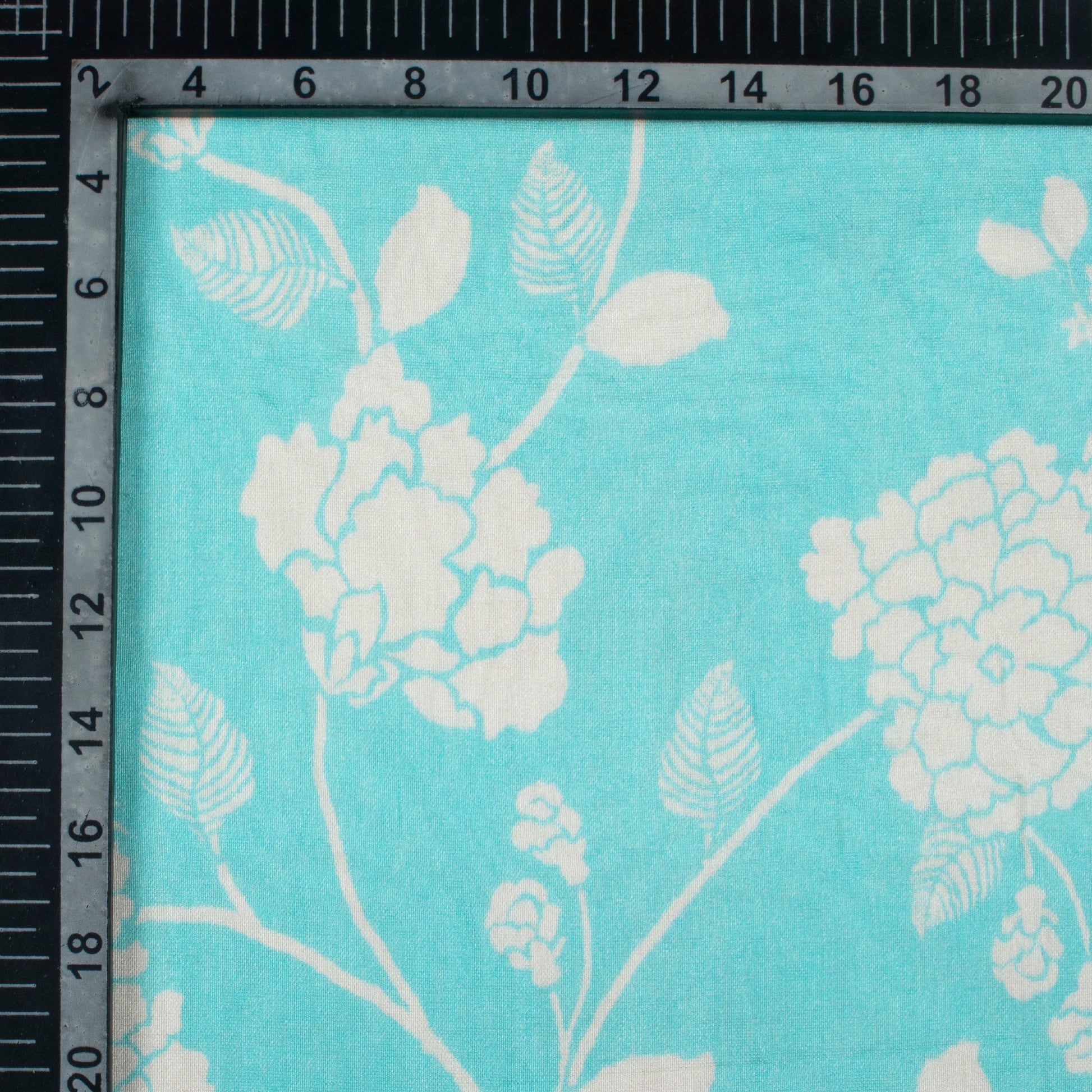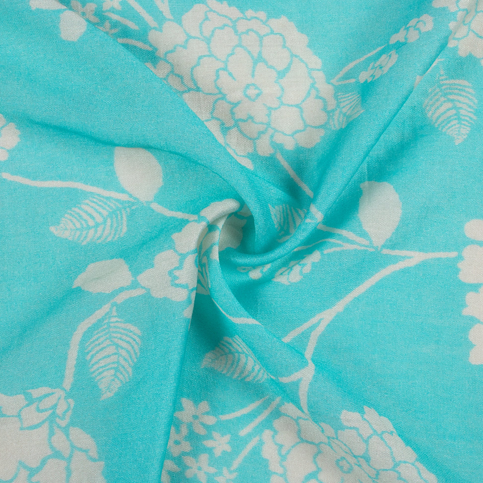 Sky Blue And Off White Floral Pattern Digital Print Viscose Chanderi Fabric