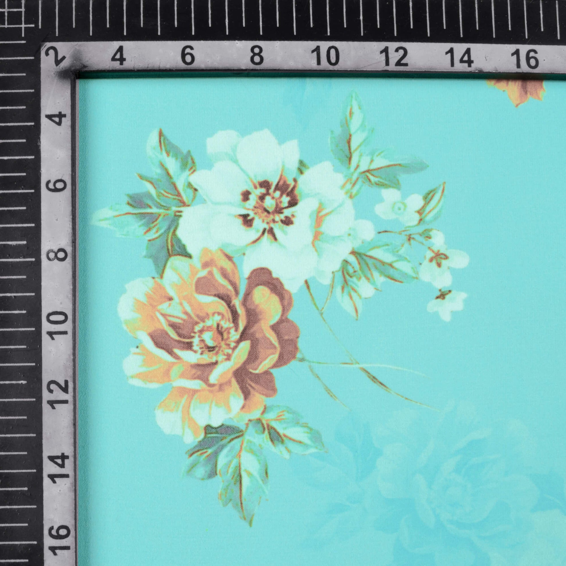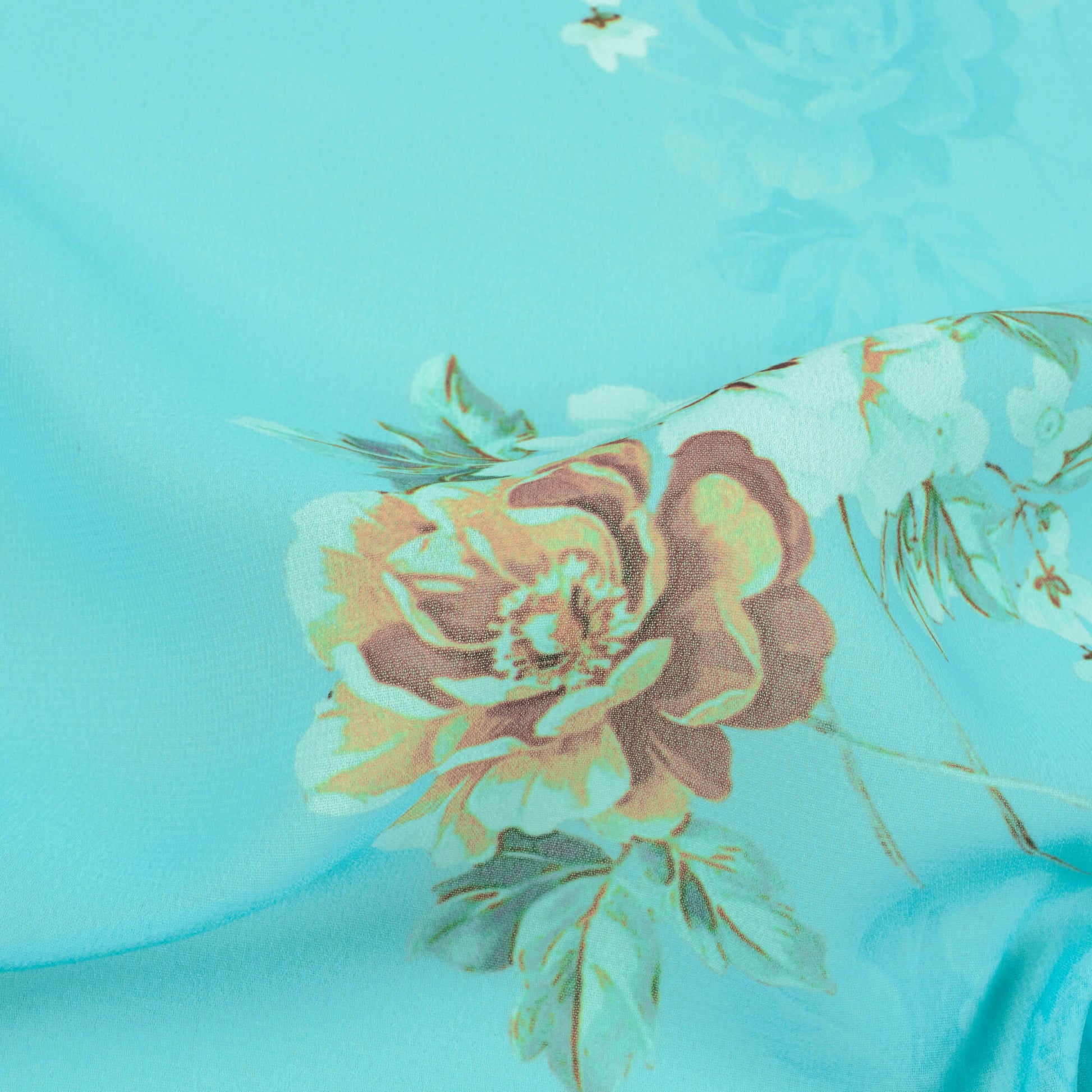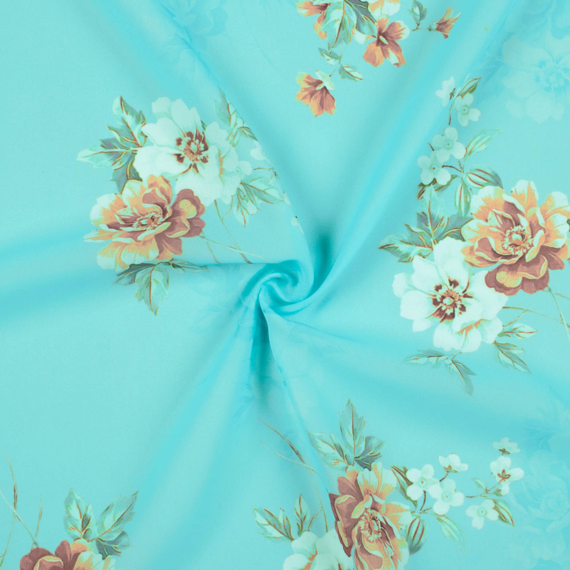 Sky Blue And White Floral Pattern Digital Print Georgette Fabric