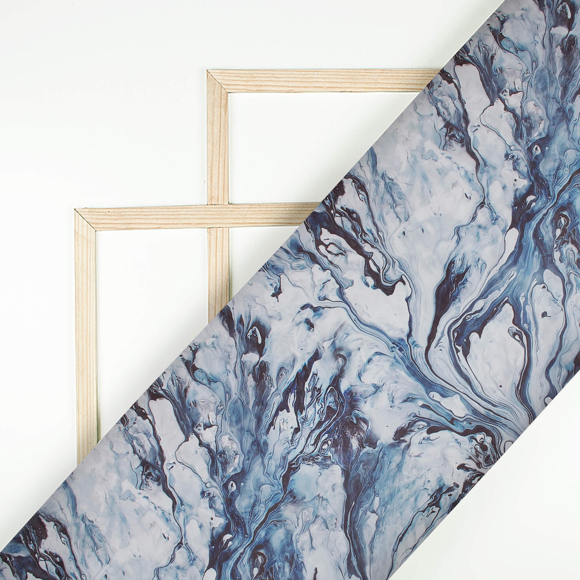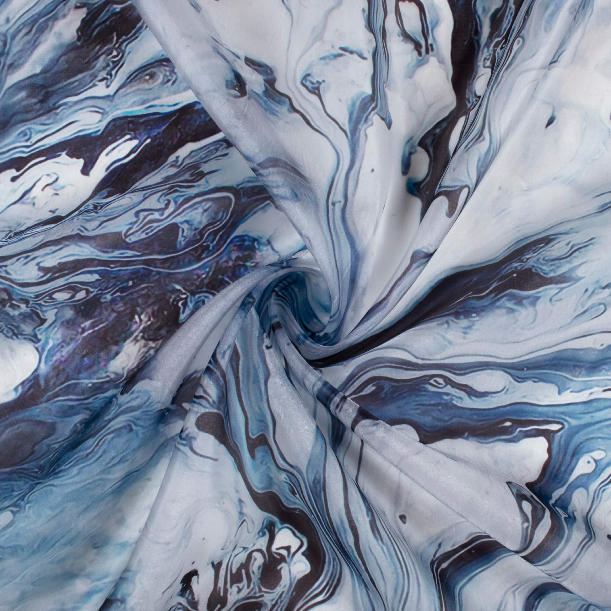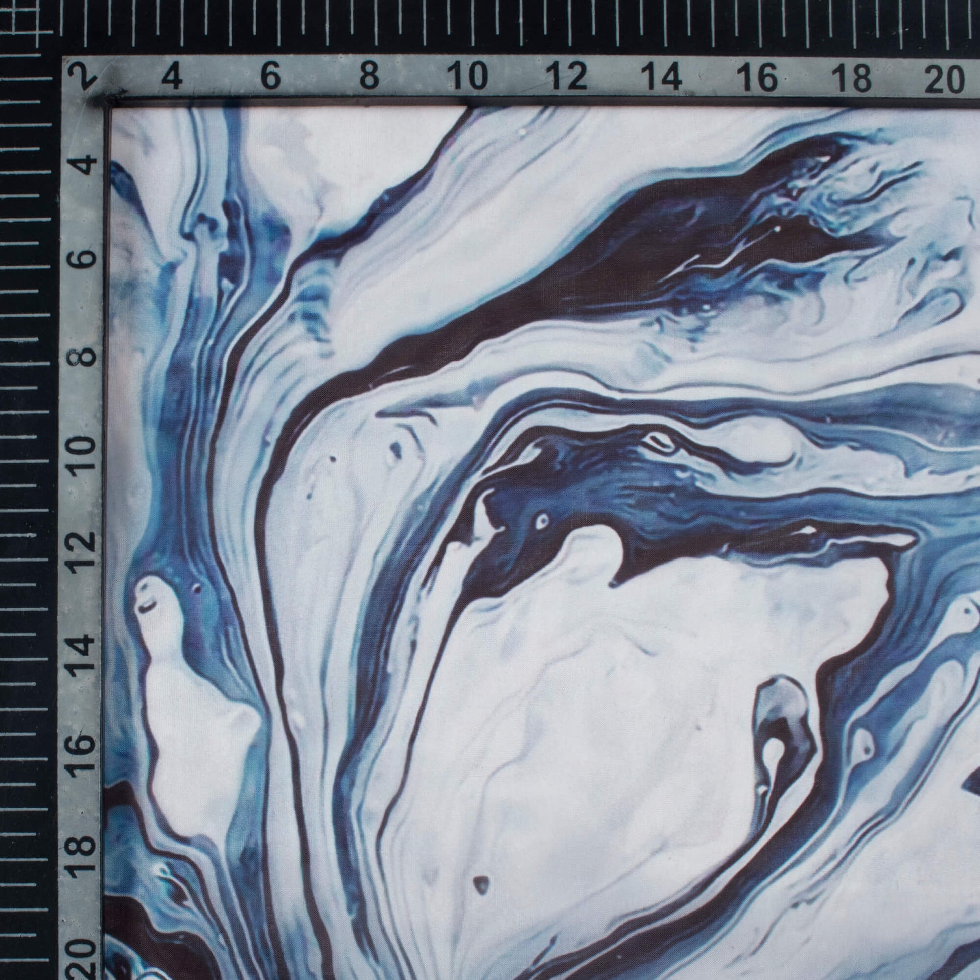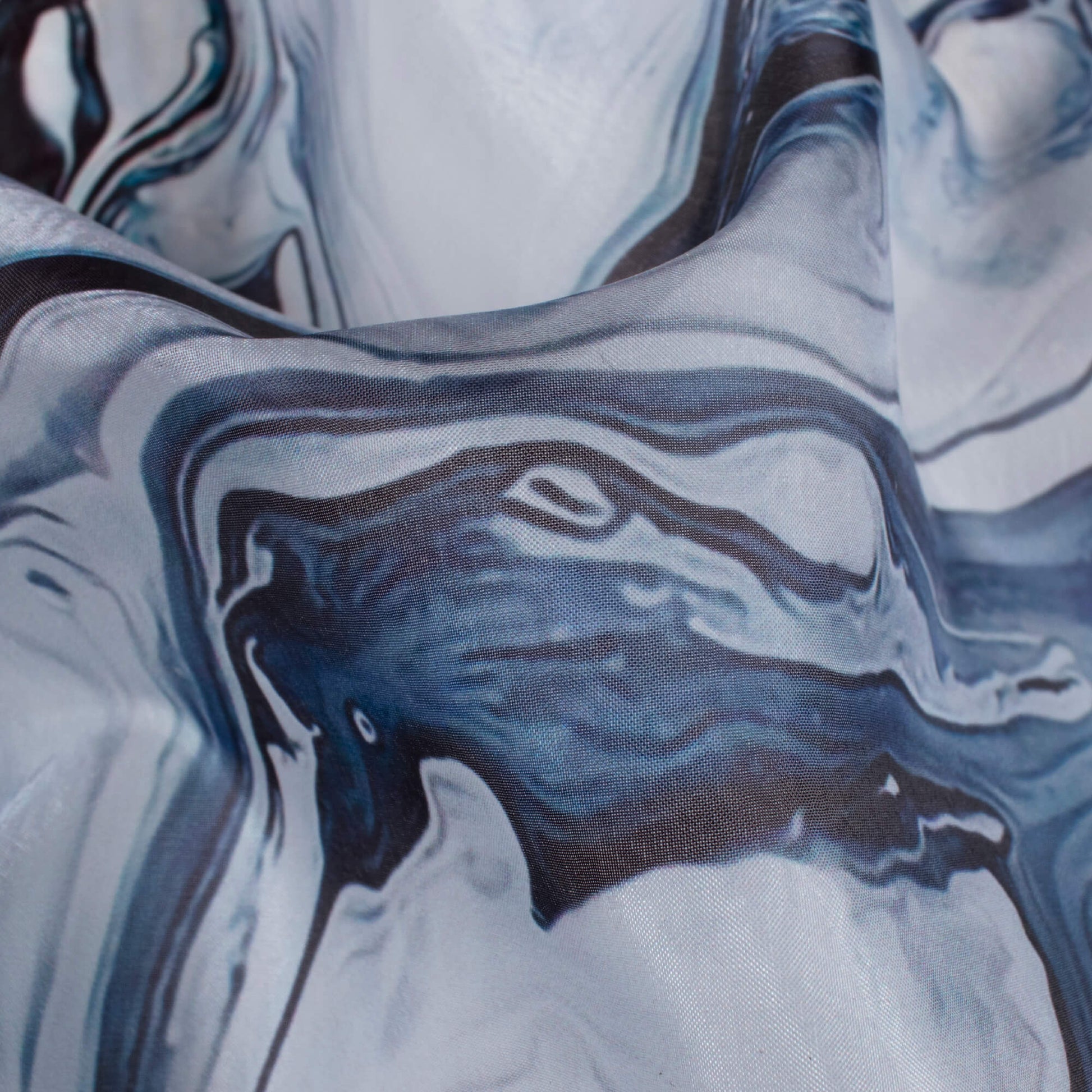 Spruce Blue And Off White Marble Pattern Digital Print Organza Satin Fabric