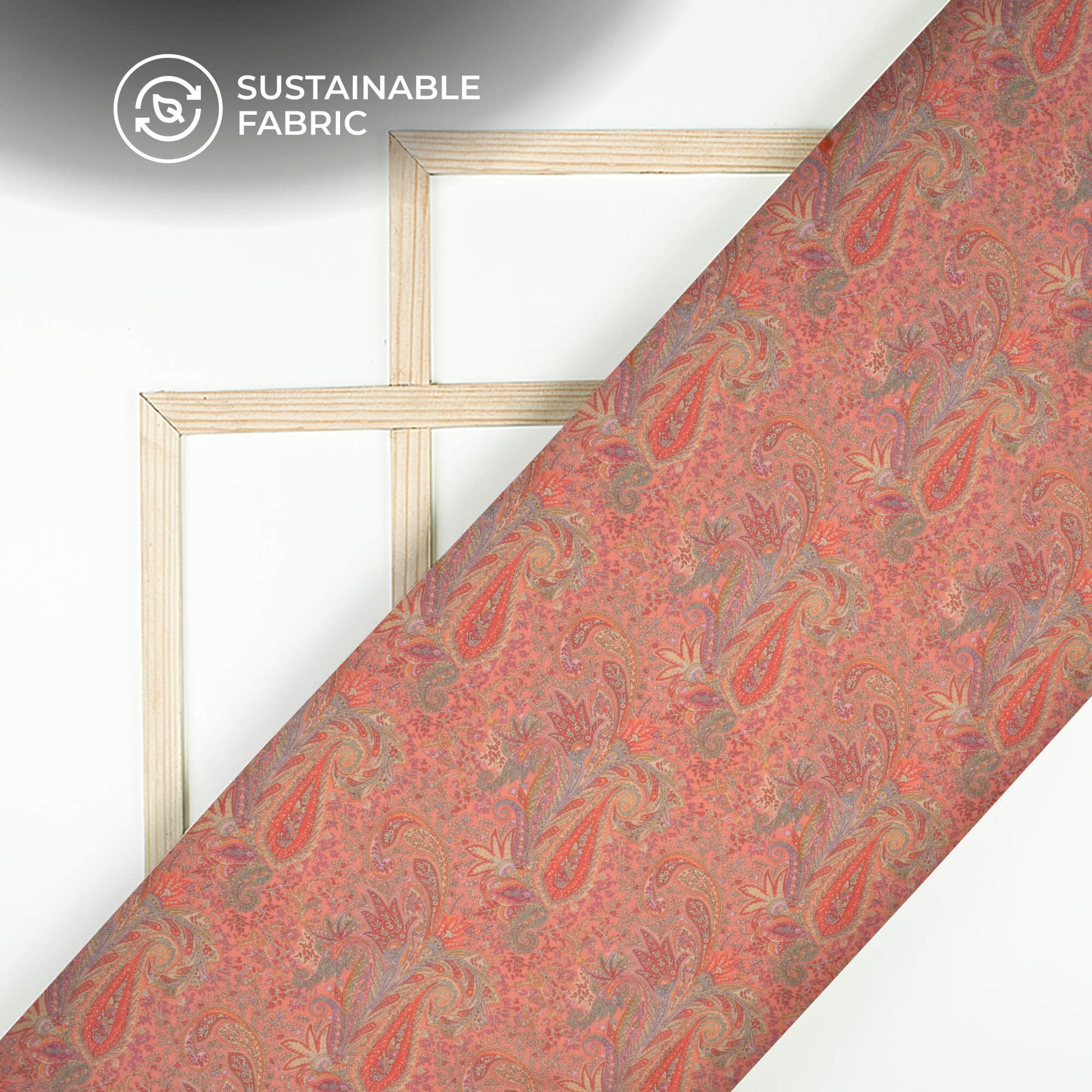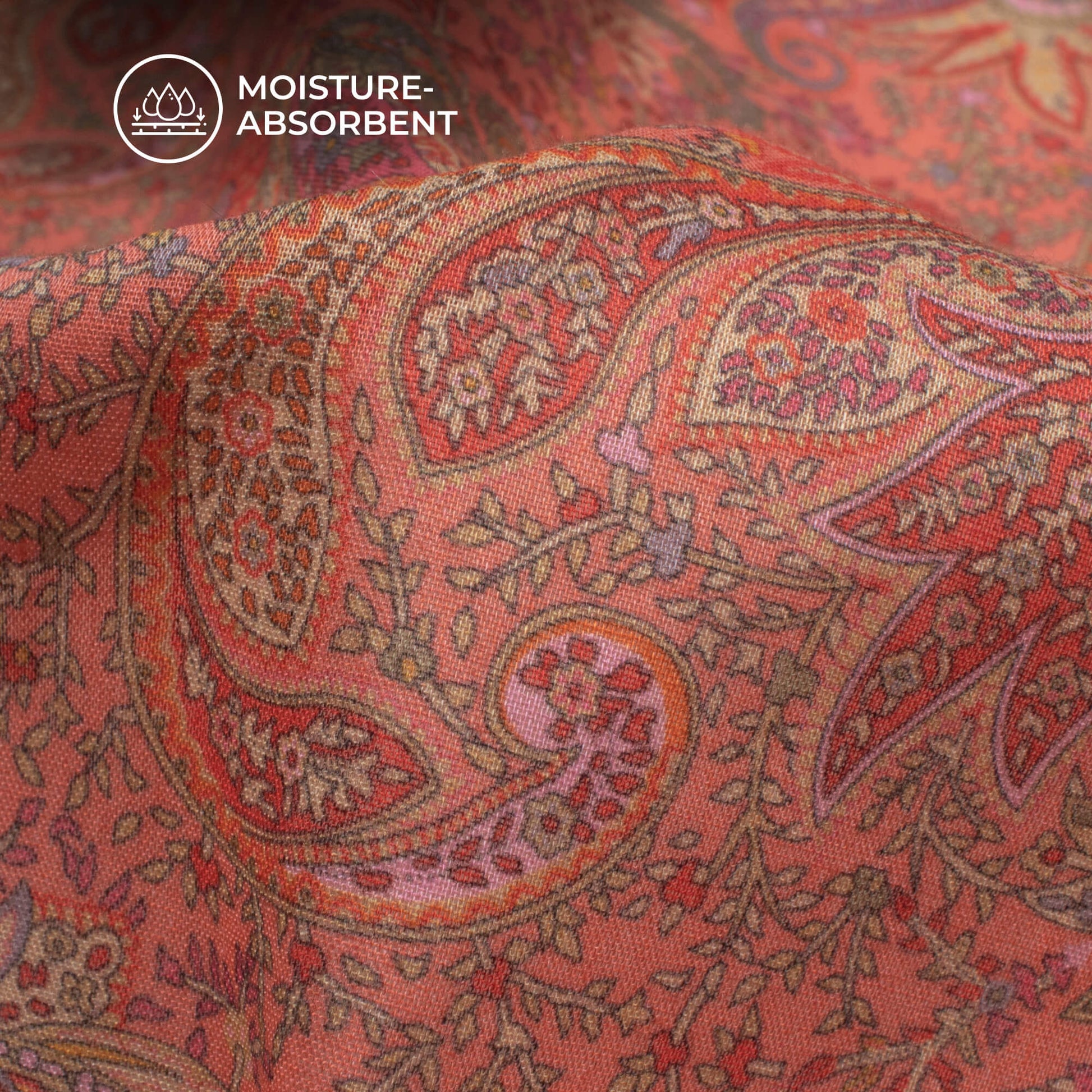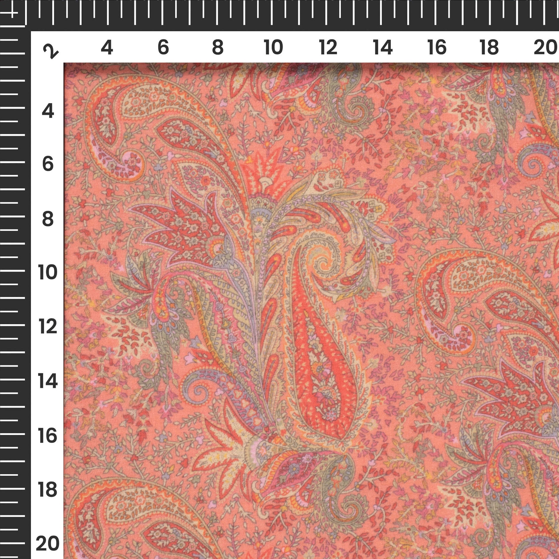 Sunkist Coral Paisley Digital Print Pure Cotton Mulmul Fabric
