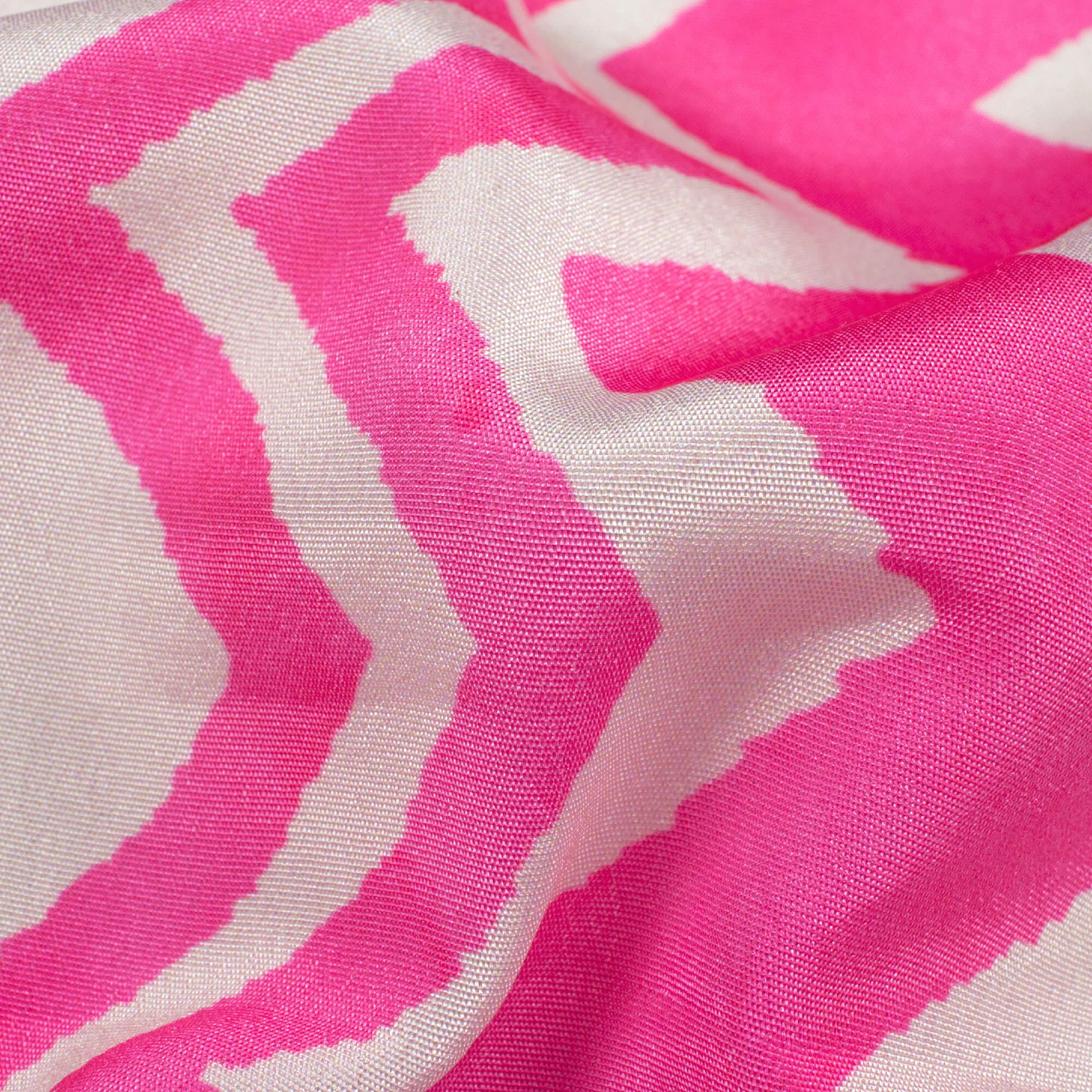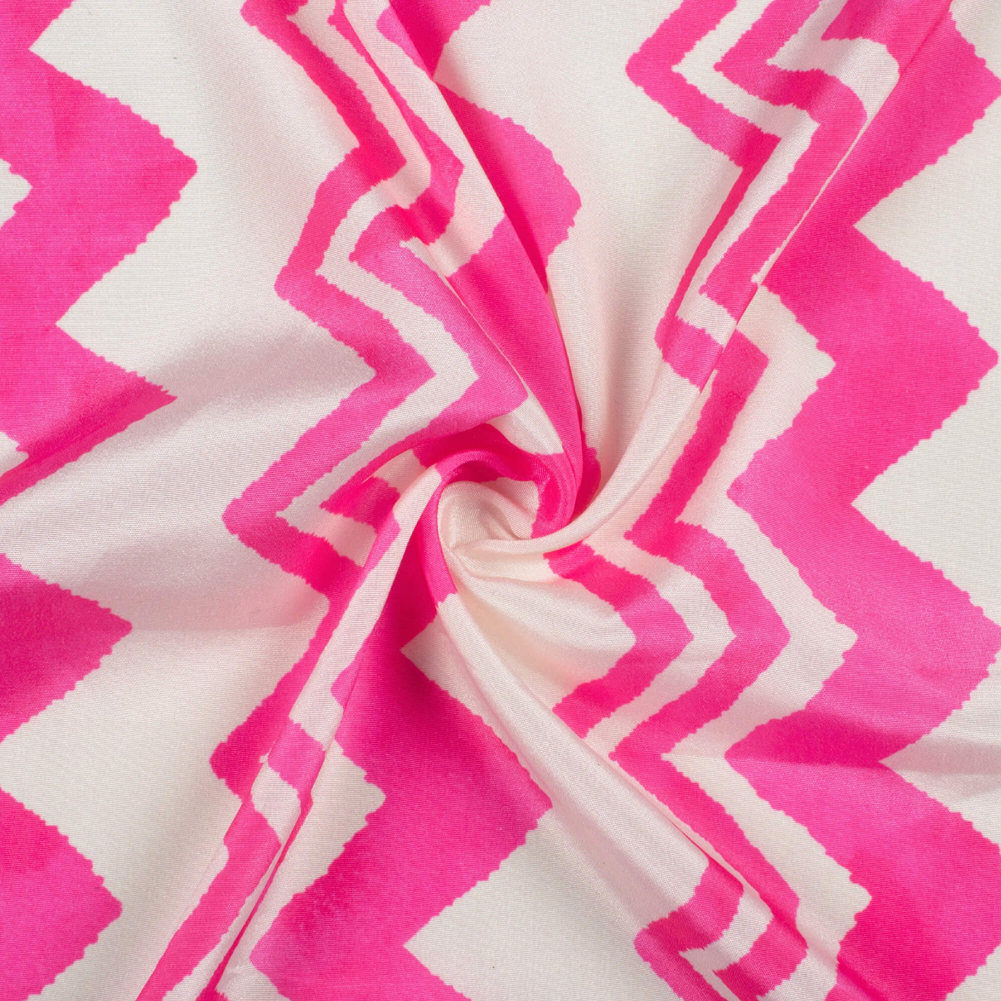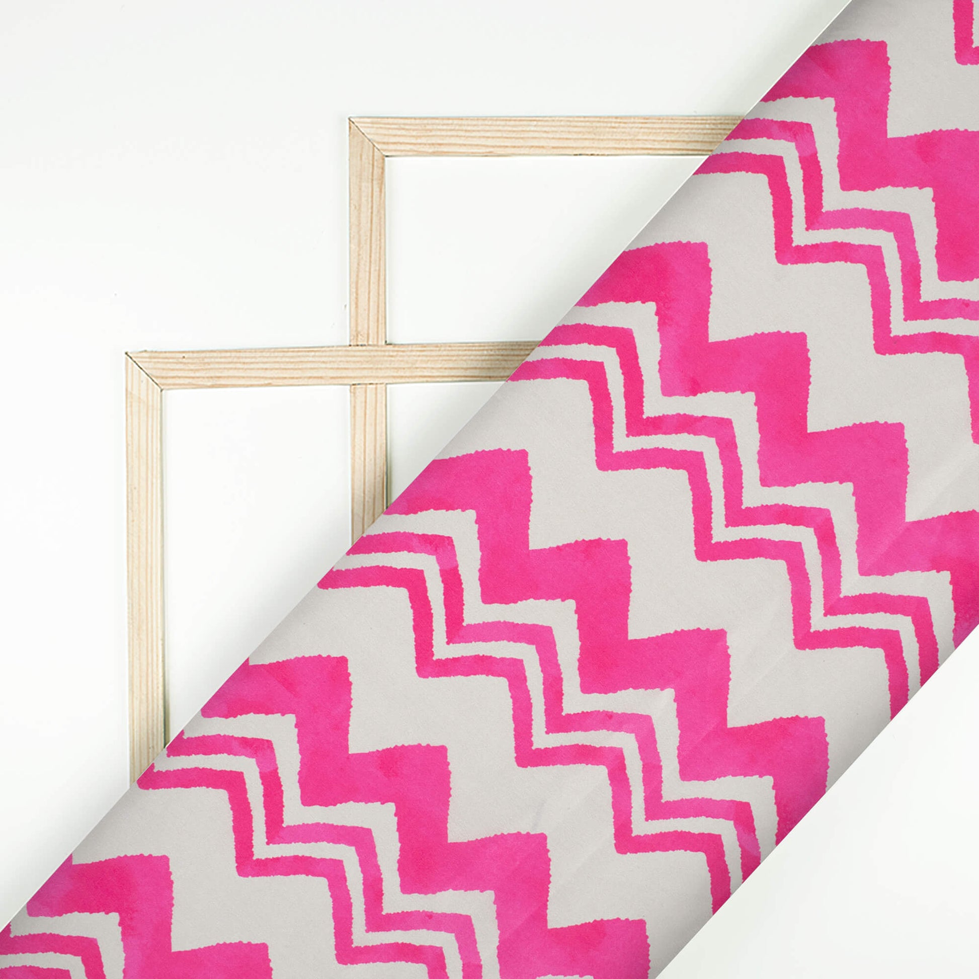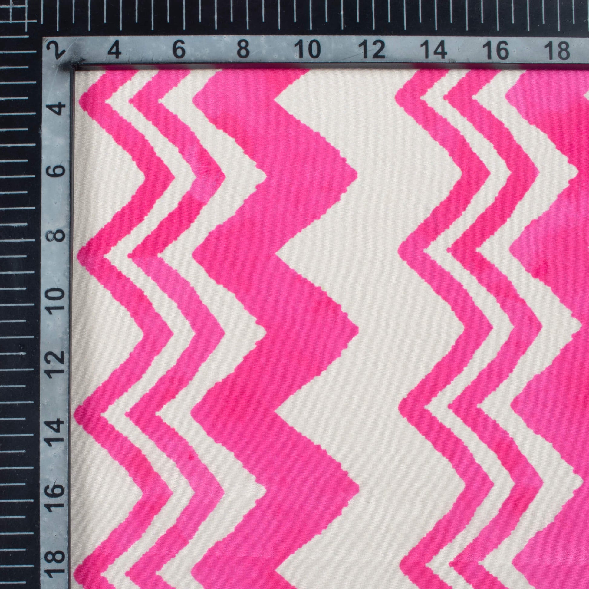 Taffy Pink And Cream Chevron Pattern Digital Print Crepe Silk Fabric