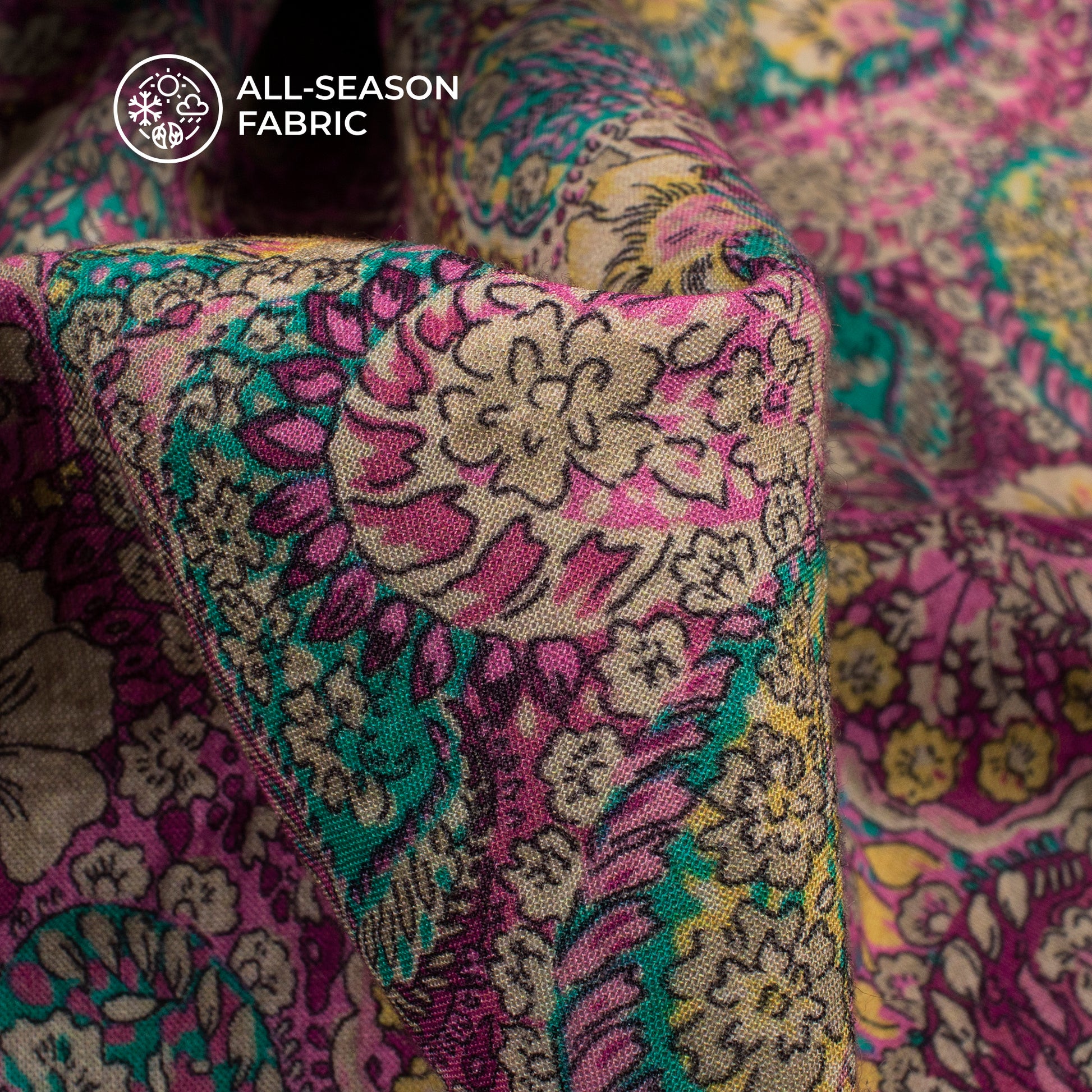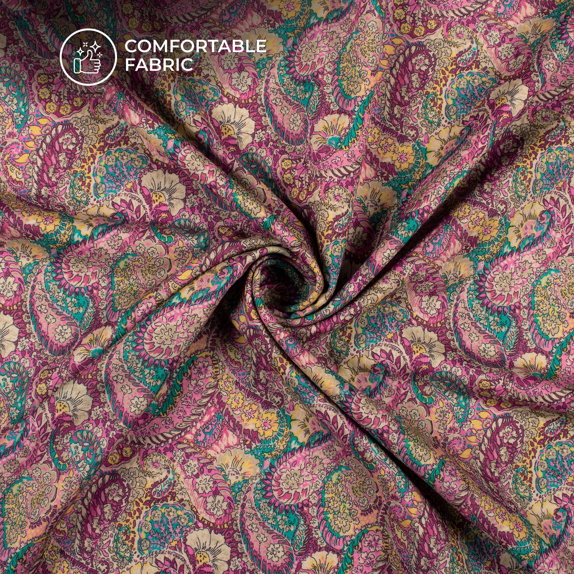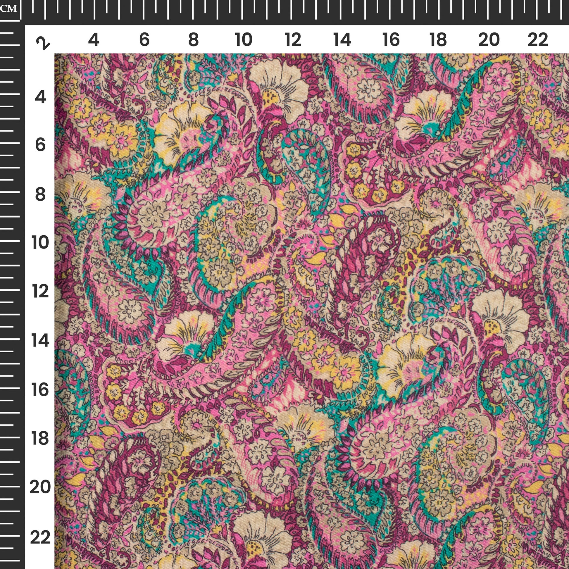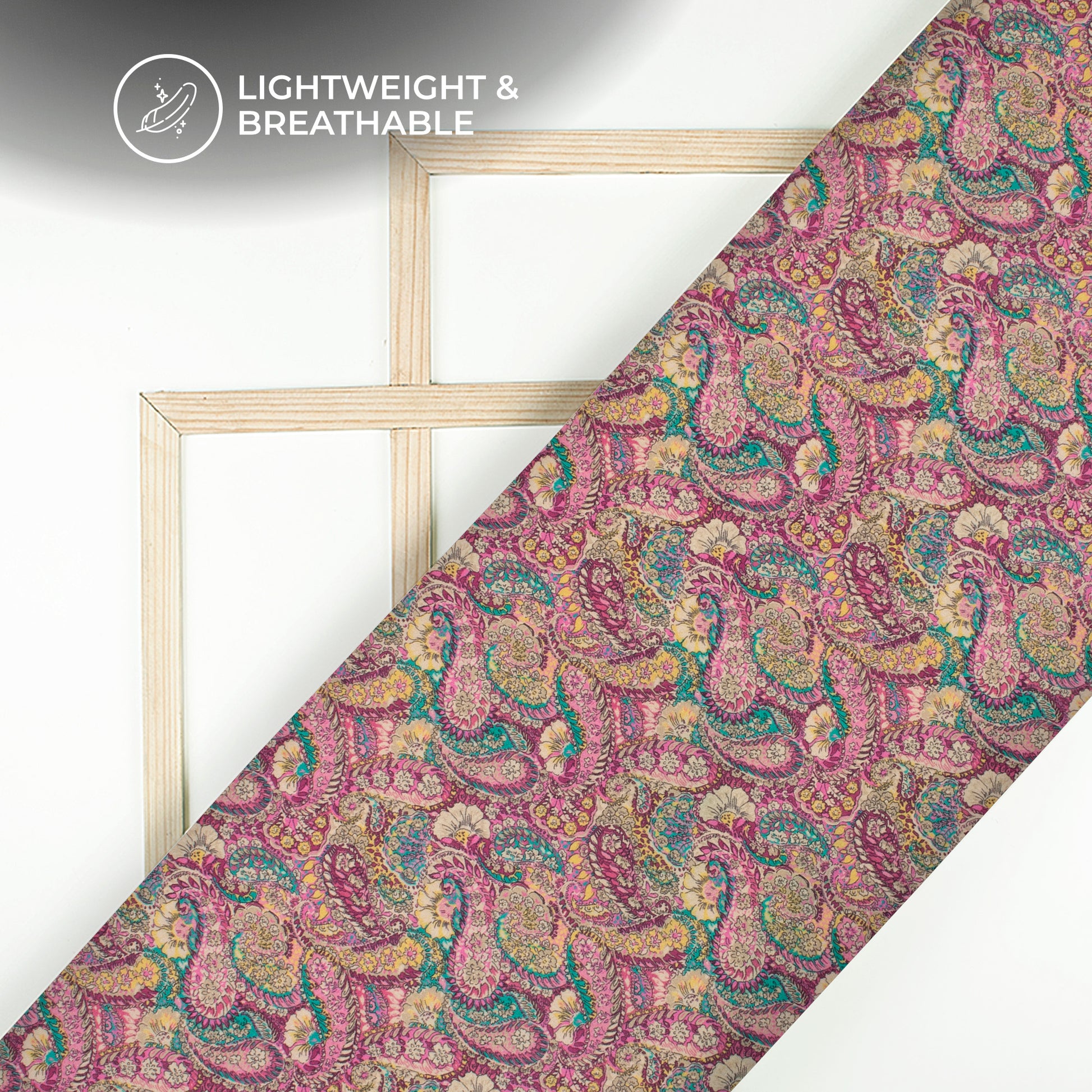 Taffy Pink And Green Paisley Digital Print Cotton Cambric Fabric