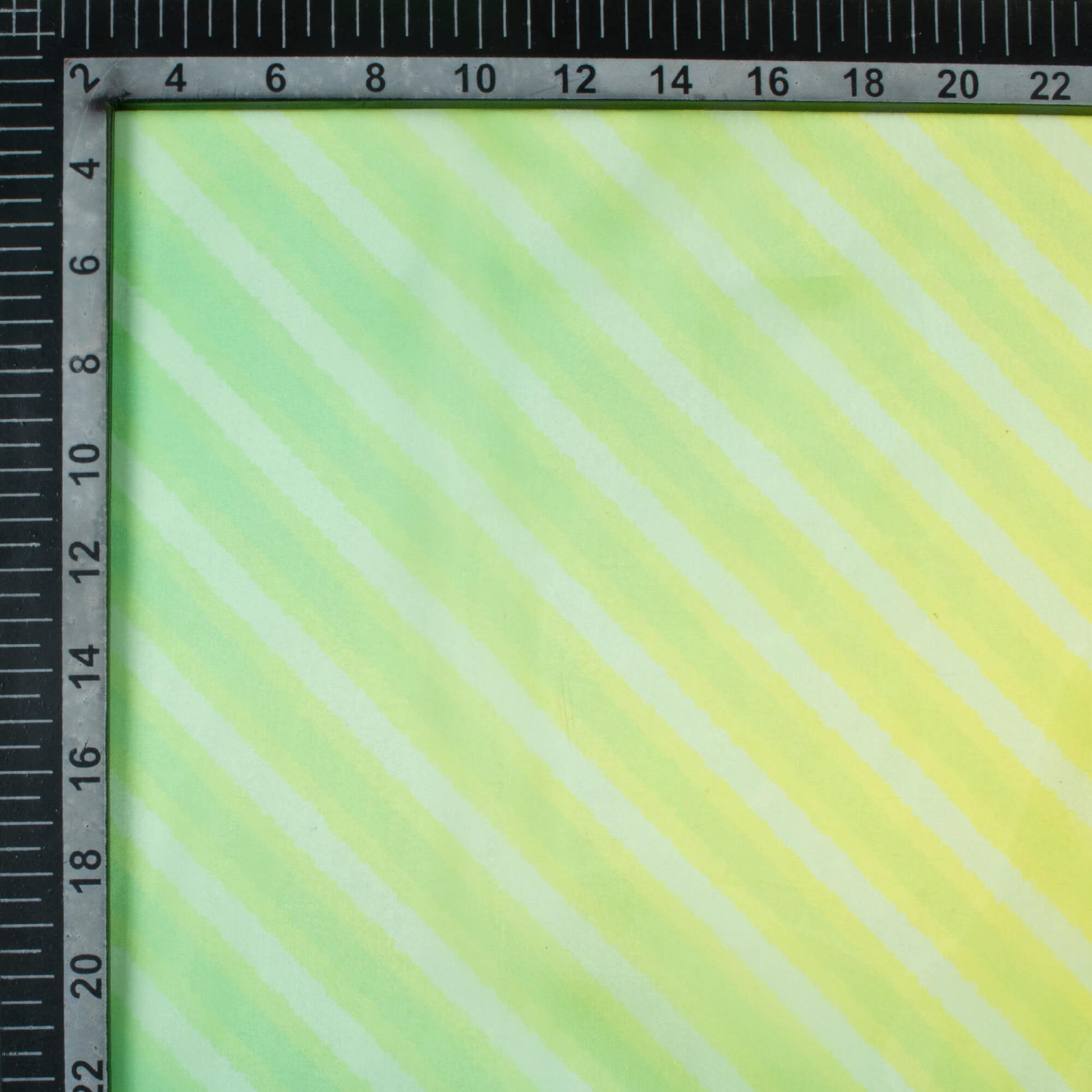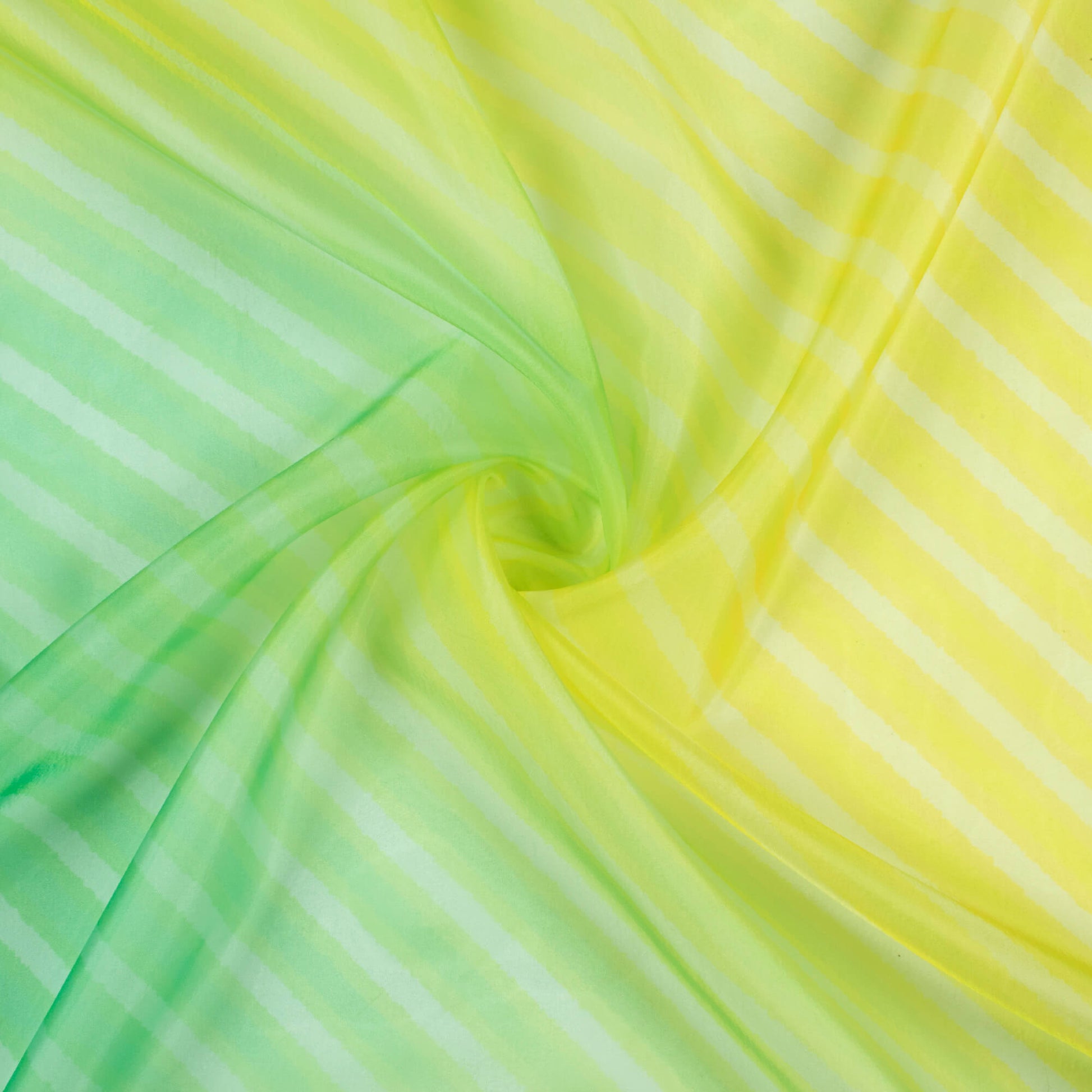 Titanium Yellow And Jade Green Leheriya Pattern Digital Print Organza Satin Fabric