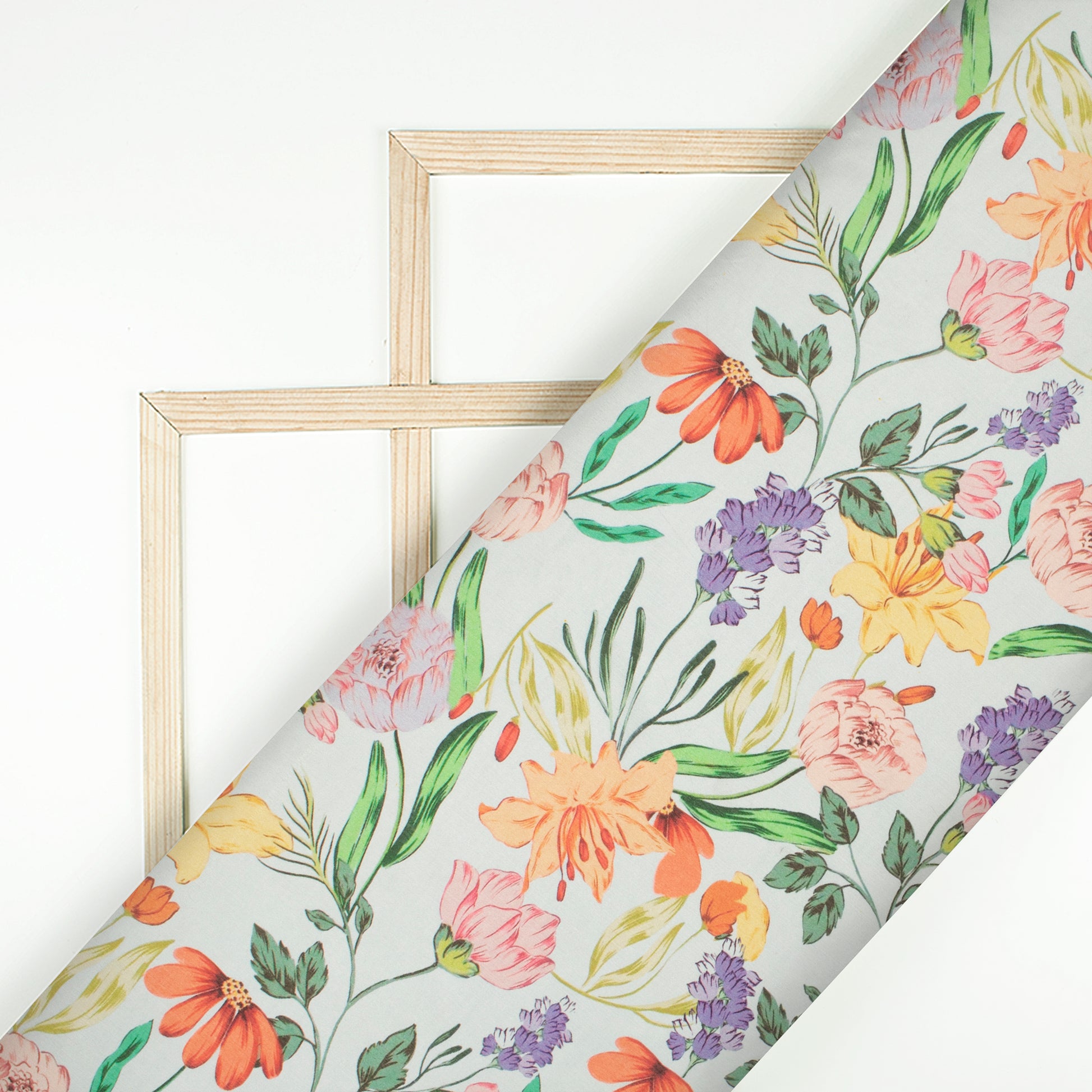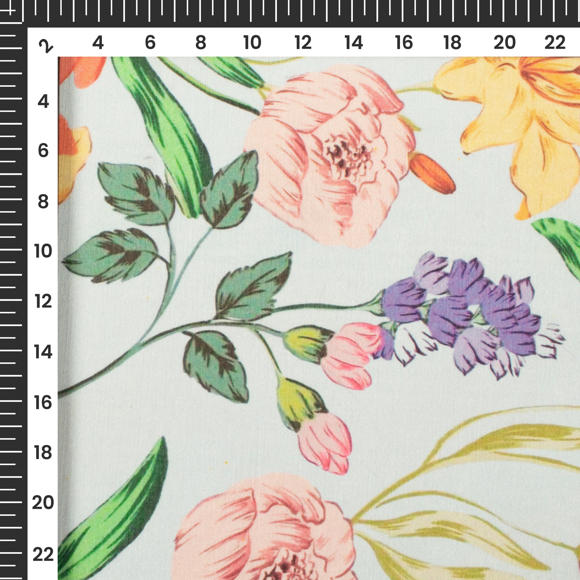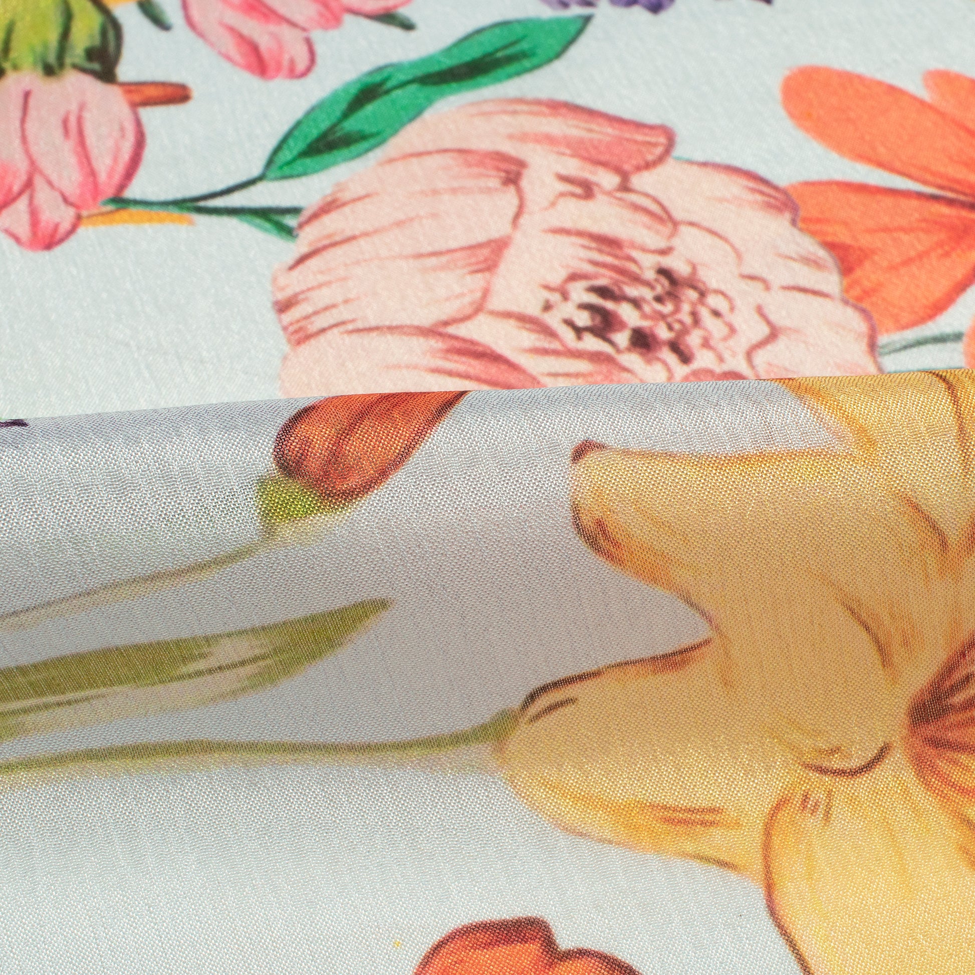 Trendy Yellow Floral Digital Print Poly Chinnon Chiffon Fabric
