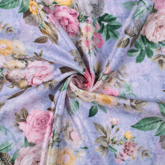 Lilac Purple And Peach Floral Pattern Digital Print Premium Velvet Fabric Lilac Purple And Peach Floral Pattern Digital Print Premium Velvet Fabric