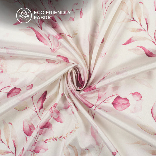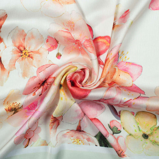 Off White And Pink Floral Pattern Digital Print Chiffon Satin Fabric Off White And Pink Floral Pattern Digital Print Chiffon Satin Fabric