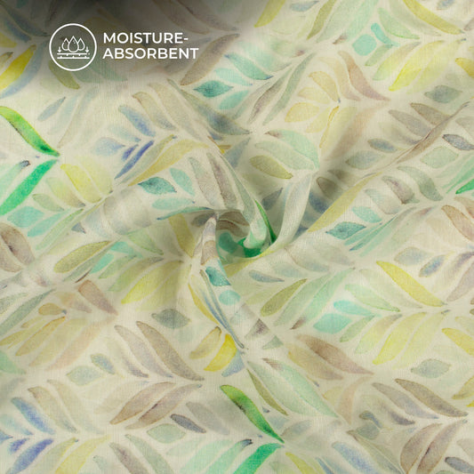 Exclusive White And Yellow Geometric Leaf Digital Print Pure Cotton Mulmul Fabric Exclusive White And Yellow Geometric Leaf Digital Print Pure Cotton Mulmul Fabric