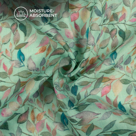 -11% offMint Green And Pink Leaf Digital Print Pure Cotton Mulmul Fabric Mint Green And Pink Leaf Digital Print Pure Cotton Mulmul Fabric