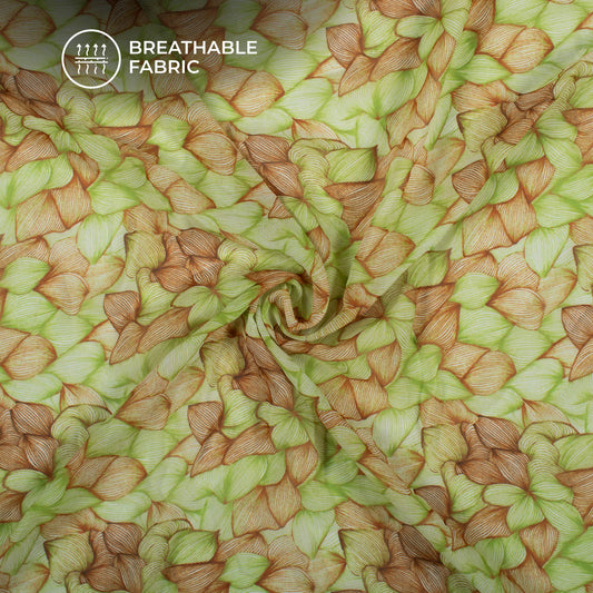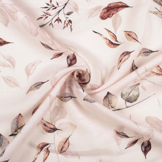 -10% offOff White And Brown Leaf Pattern Digital Print Muslin Fabric Off White And Brown Leaf Pattern Digital Print Muslin Fabric