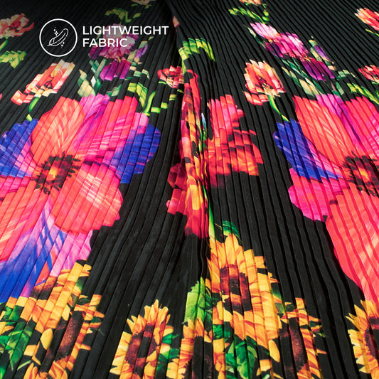 -7% offAttractive Black Floral Pleated Digital Print Crepe Satin Fabric Attractive Black Floral Pleated Digital Print Crepe Satin Fabric