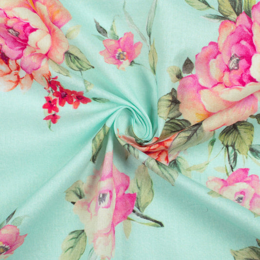 -10% offTiffany Blue And Taffy Pink Floral Pattern Digital Print Cotton Cambric Fabric Tiffany Blue And Taffy Pink Floral Pattern Digital Print Cotton Cambric Fabric