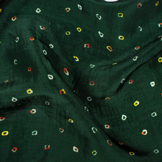 Forest Green And Corn Yellow Bandhanii Pattern Digital Print Viscose Uppada Silk Fabric Forest Green And Corn Yellow Bandhanii Pattern Digital Print Viscose Uppada Silk Fabric