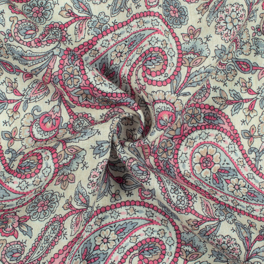 -11% offCream and Pink Paisley Pattern Digital Print Pure Cotton Mulmul Fabric Cream and Pink Paisley Pattern Digital Print Pure Cotton Mulmul Fabric