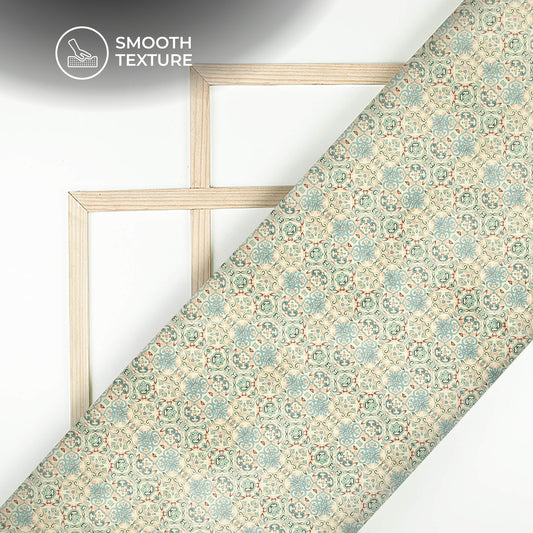 -11% offCream and Viridian Green Trellis Pattern Digital Print Pure Cotton Mulmul Fabric Cream and Viridian Green Trellis Pattern Digital Print Pure Cotton Mulmul Fabric