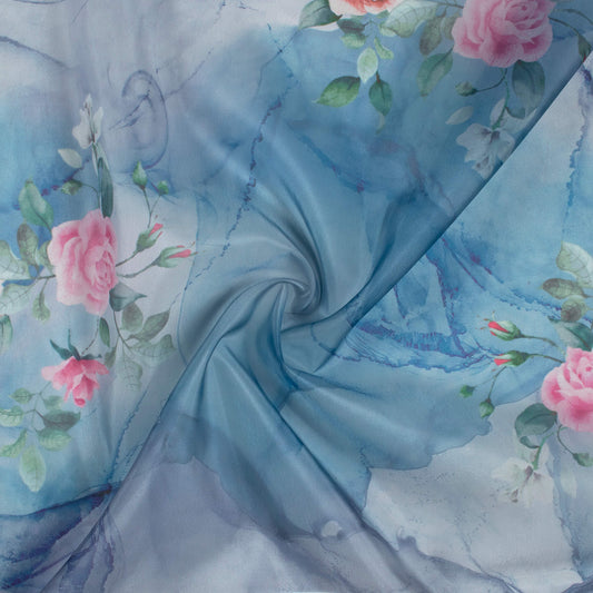 -7% offPeacock Blue And Rose Pink Floral Pattern Digital Print Crepe Silk Fabric Peacock Blue And Rose Pink Floral Pattern Digital Print Crepe Silk Fabric