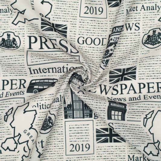 -10% offIvory Cream And Brown Newspaper Pattern Digital Print Rayon Fabric Ivory Cream And Brown Newspaper Pattern Digital Print Rayon Fabric