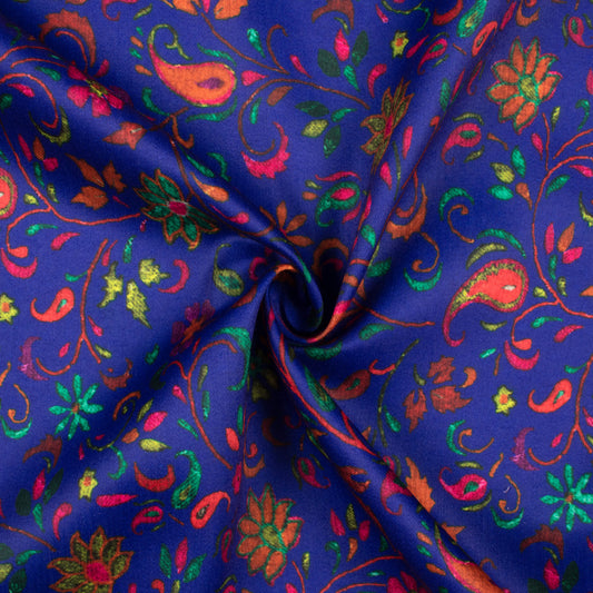 Royal Blue And Persian Red Floral Pattern Digital Print Poly Glazed Cotton Fabric Royal Blue And Persian Red Floral Pattern Digital Print Poly Glazed Cotton Fabric