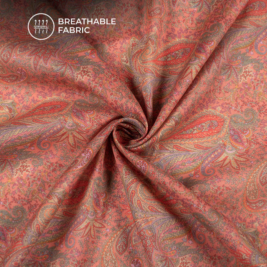Sunkist Coral Paisley Digital Print Pure Cotton Mulmul Fabric Sunkist Coral Paisley Digital Print Pure Cotton Mulmul Fabric