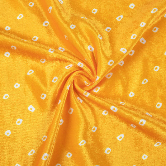 Fire Yellow And White Bandhanii Pattern Digital Print Premium Velvet Fabric Fire Yellow And White Bandhanii Pattern Digital Print Premium Velvet Fabric