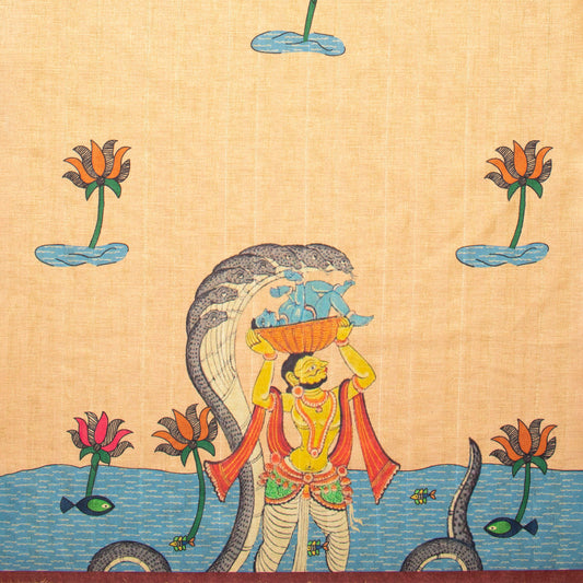 Sand Beige And Maya Blue Madhuvanii Pattern Digital Print Art Tusser Silk Fabric Sand Beige And Maya Blue Madhuvanii Pattern Digital Print Art Tusser Silk Fabric
