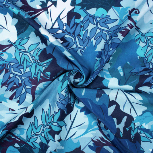 Bondi Blue And Black Camouflage Digital Print Ultra Premium Butter Crepe Fabric Bondi Blue And Black Camouflage Digital Print Ultra Premium Butter Crepe Fabric