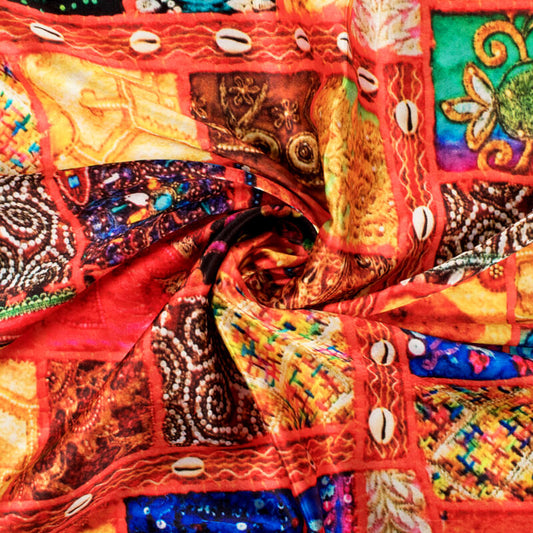 -10% offOrange And Blue Gamthee Pattern Digital Printed Japan Satin Fabric Orange And Blue Gamthee Pattern Digital Printed Japan Satin Fabric