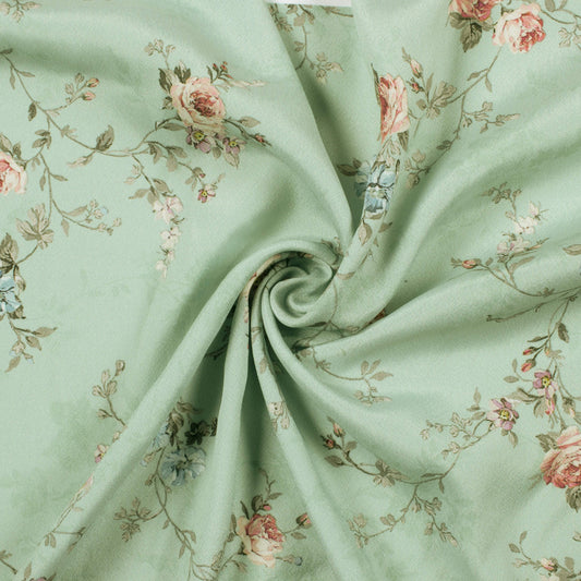 -10% offPistachio Green And Taffy Pink Floral Pattern Digital Print Organza Satin Fabric Pistachio Green And Taffy Pink Floral Pattern Digital Print Organza Satin Fabric