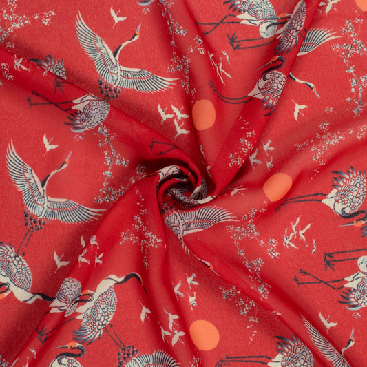 -10% offBerry Red And White Bird Pattern Digital Print Georgette Fabric Berry Red And White Bird Pattern Digital Print Georgette Fabric
