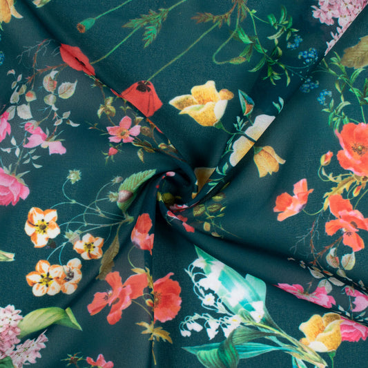 -10% offPeacock Blue And Cherry Red Floral Pattern Digital Print Georgette Fabric Peacock Blue And Cherry Red Floral Pattern Digital Print Georgette Fabric