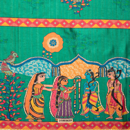 Persian Green And Red Madhuvanii Pattern Digital Print Art Tusser Silk Fabric Persian Green And Red Madhuvanii Pattern Digital Print Art Tusser Silk Fabric