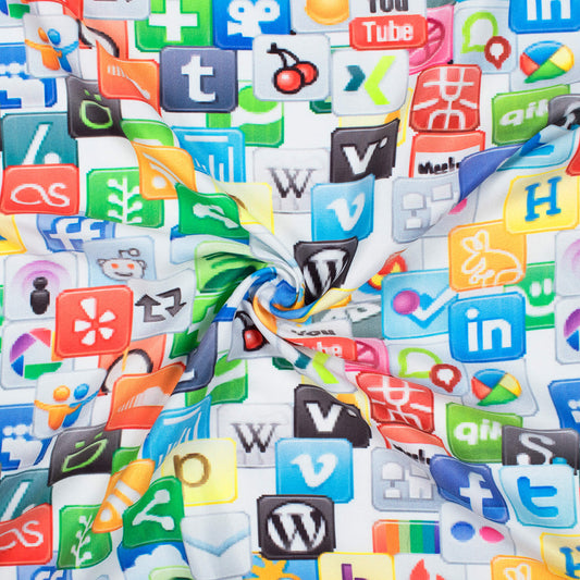 Multi-Color Social Media Pattern Digital Print Ultra Premium Butter Crepe Fabric Multi-Color Social Media Pattern Digital Print Ultra Premium Butter Crepe Fabric