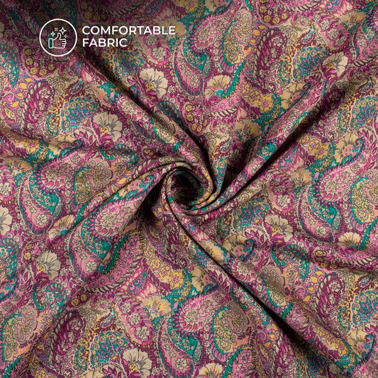 -10% offTaffy Pink And Green Paisley Digital Print Cotton Cambric Fabric Taffy Pink And Green Paisley Digital Print Cotton Cambric Fabric