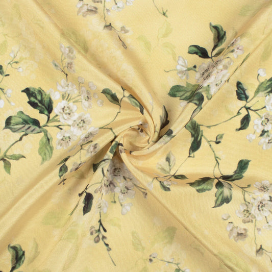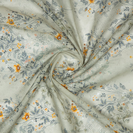 -7% offMellow Yellow And Oyster Grey Floral Pattern Digital Print Crepe Silk Fabric Mellow Yellow And Oyster Grey Floral Pattern Digital Print Crepe Silk Fabric