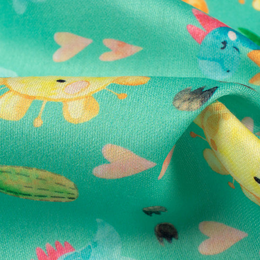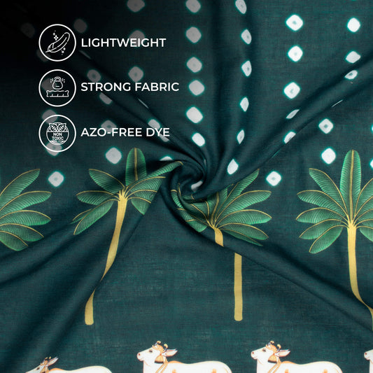 -6% offDark Green And White Pichwaii Pattern Digital Print Poly Cambric Fabric Dark Green And White Pichwaii Pattern Digital Print Poly Cambric Fabric