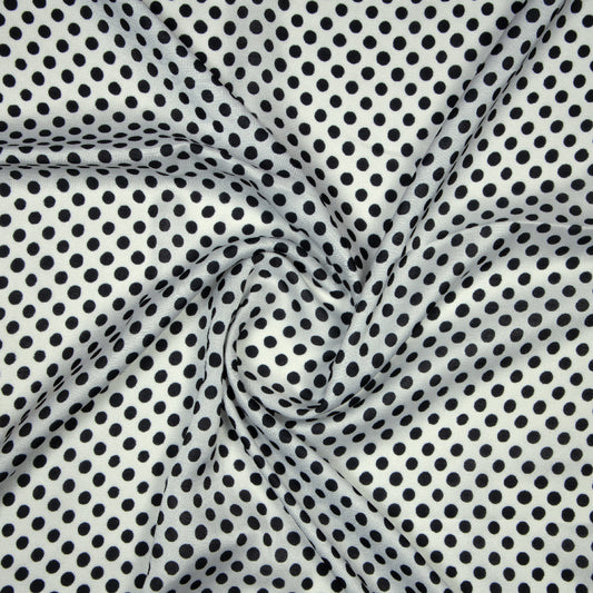 -30% offWhite And Black Polka Dots Digital Print Modal Satin Fabric White And Black Polka Dots Digital Print Modal Satin Fabric